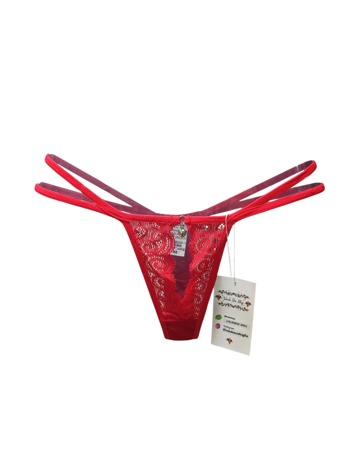 Calcinha Fio Coração Strass - M Vermelho