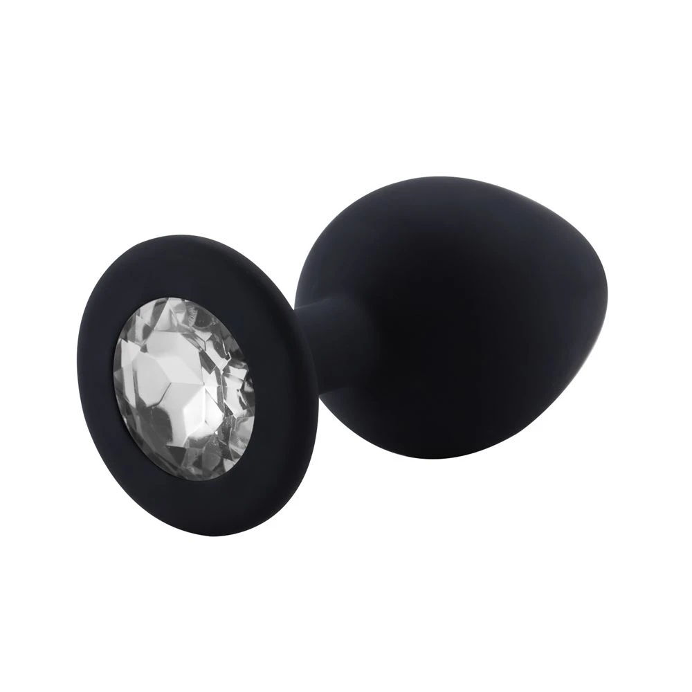 Plug M Silicone Preto Pedra Redonda Cristal