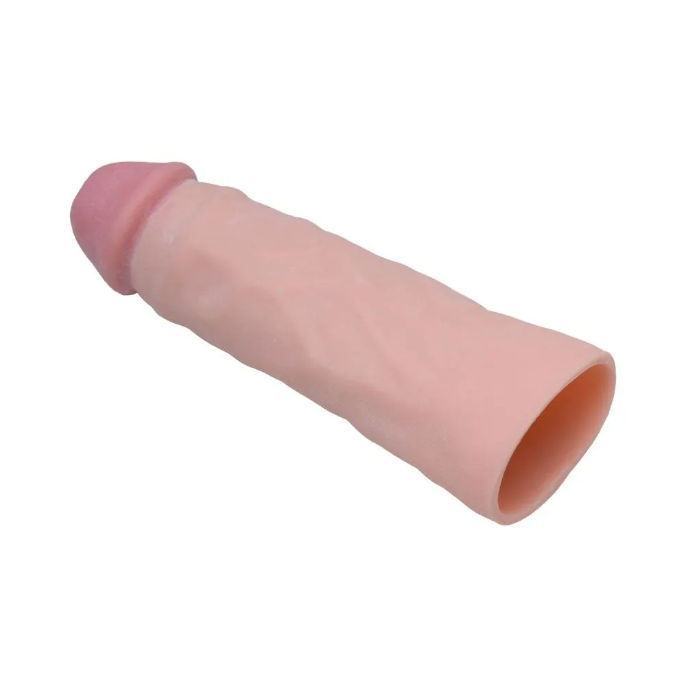 Capa peniana Cyber ultra macia e flexível, possui glande definida e uma textura realística de veias salientes ao longo do corpo,