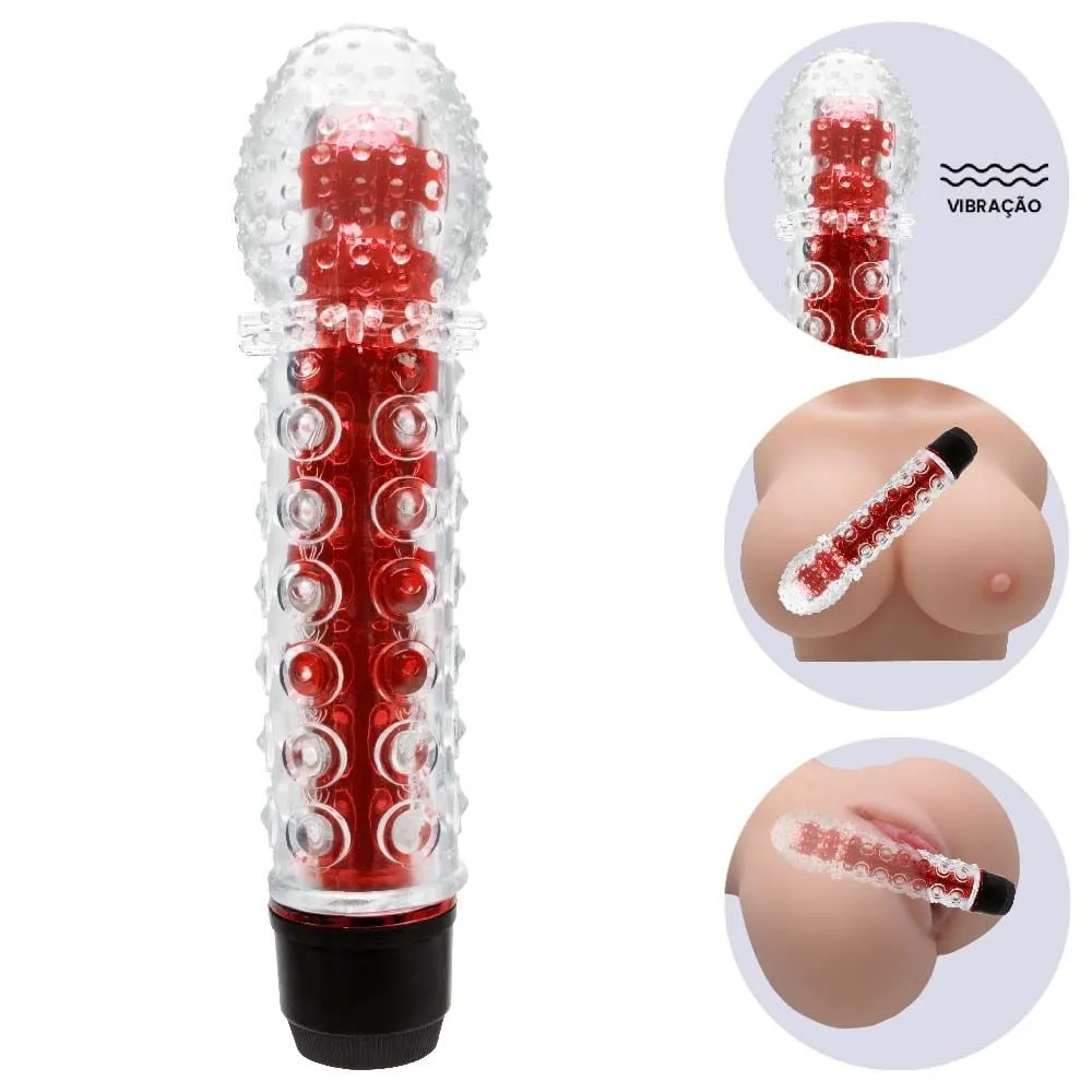 Vibrador 15x4cm Jelly Texturas Vermelho À Pilha Vermelho