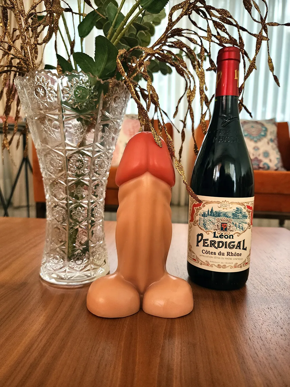 Pênis 16x6cm Com Ventosa Grosso Flexível e Escroto Bege