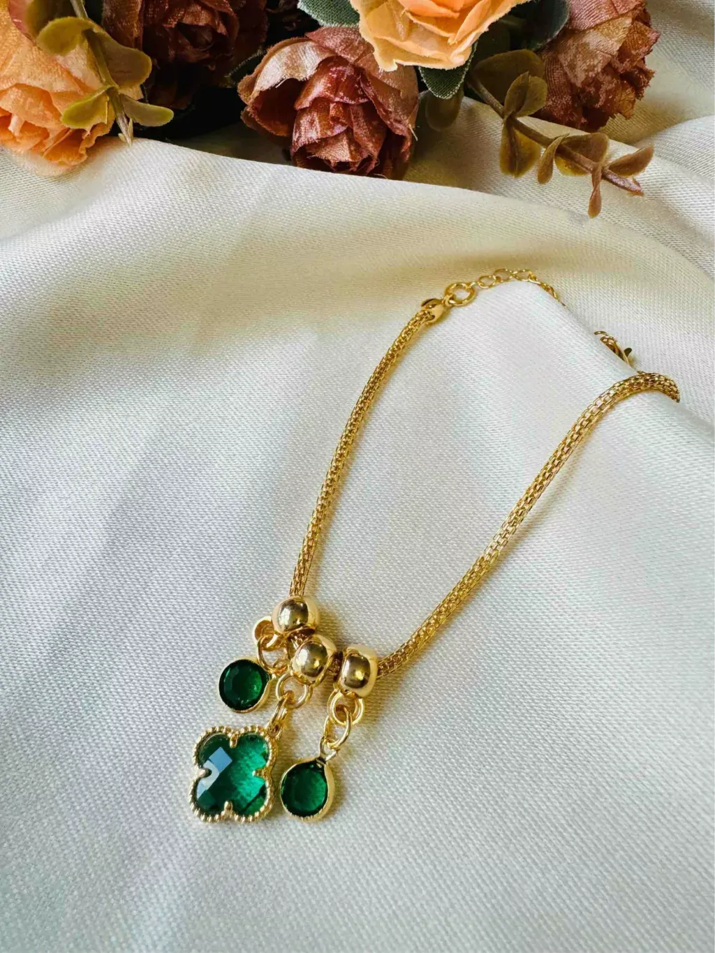 Pulseira Trevo Verde Esmeralda Folheado a Ouro 18K