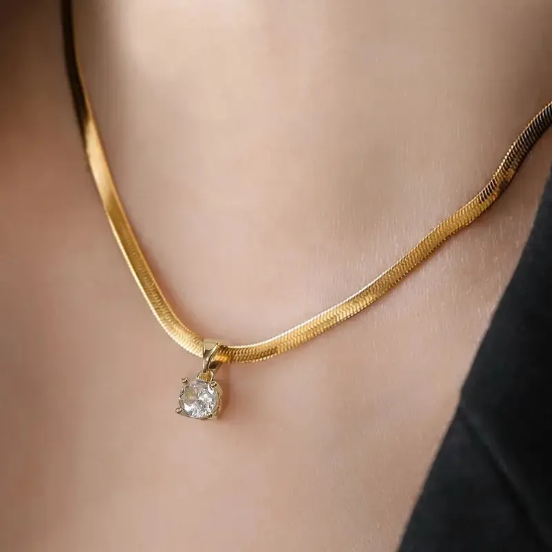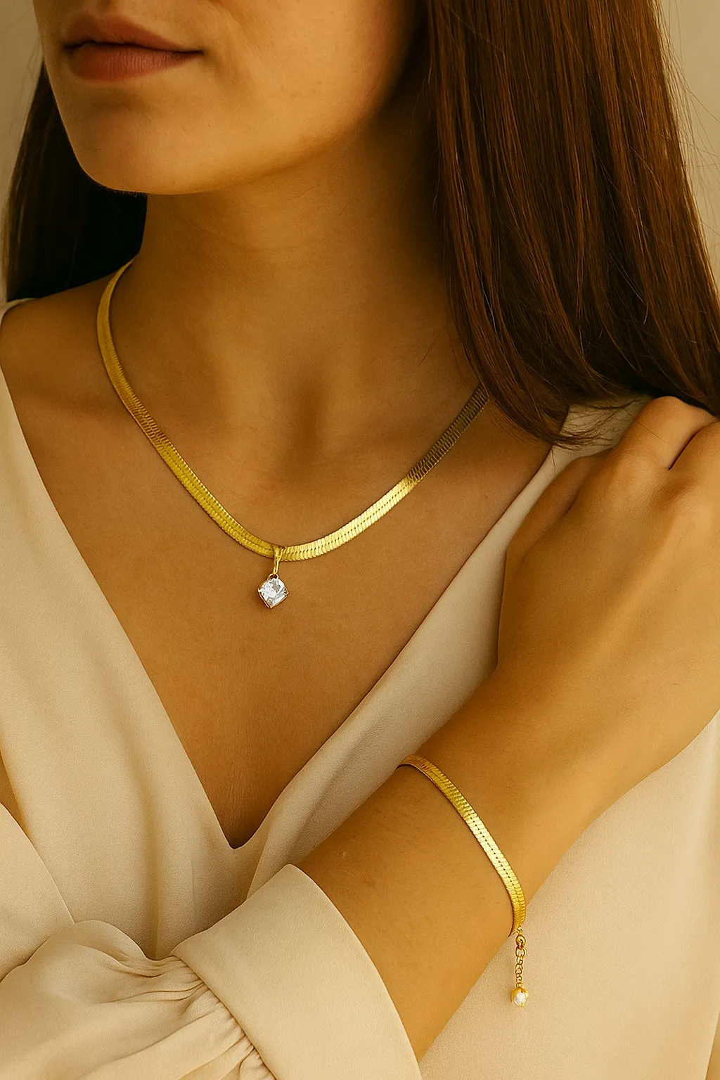 Kit Colar e Pulseira Laminada Pingente Zircônia