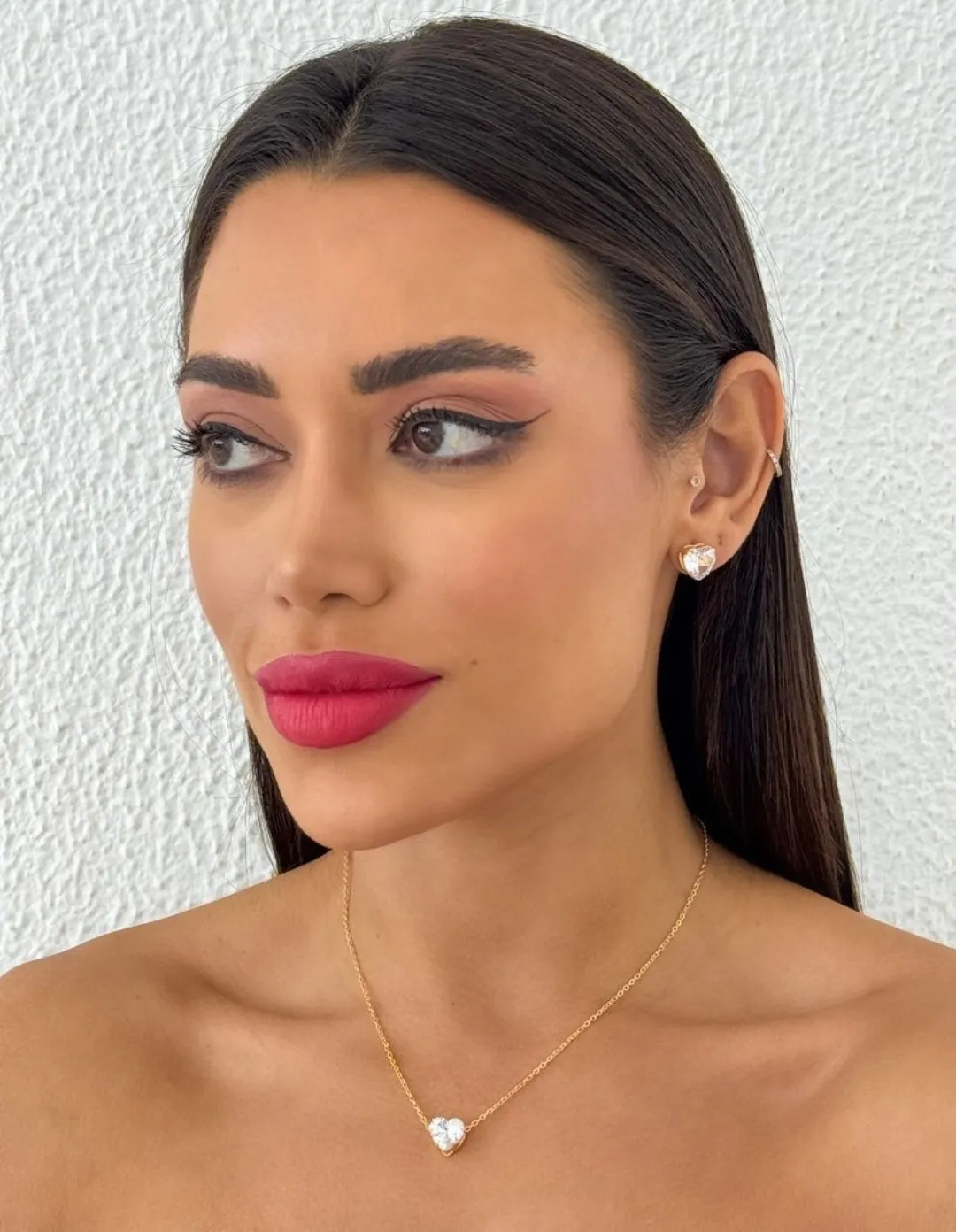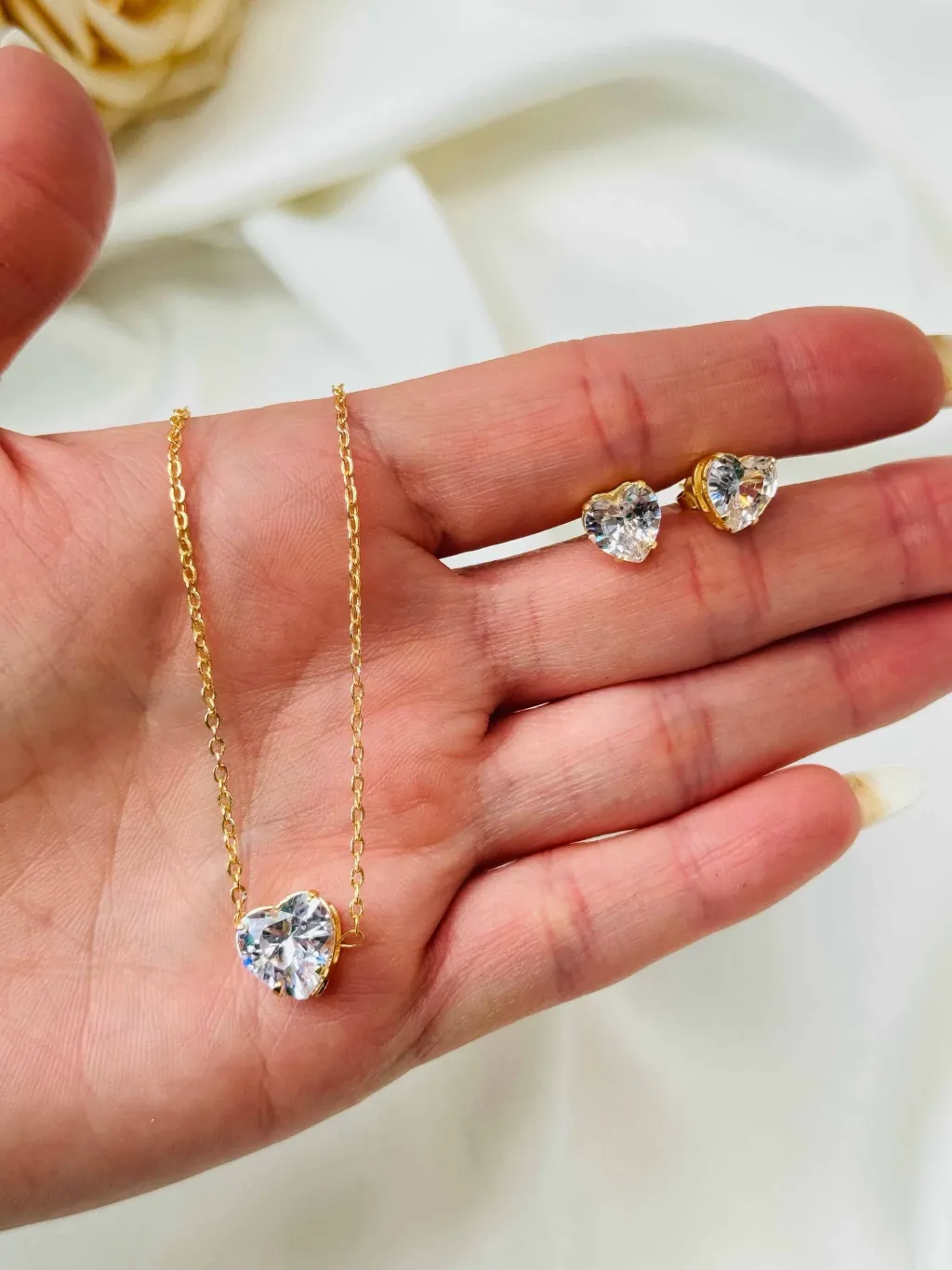 Kit Colar e Brinco Coração Zircônia Cristal Folheado Ouro 18k: elegância e durabilidade em um só conjunto.