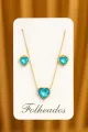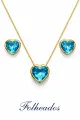 Kit Colar e Brinco Coração Zircônia Azul Claro Folheado a Ouro 18K