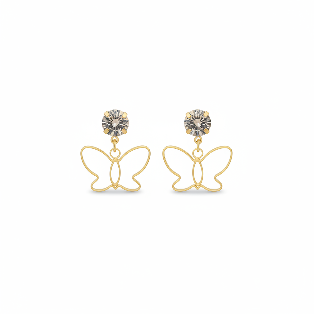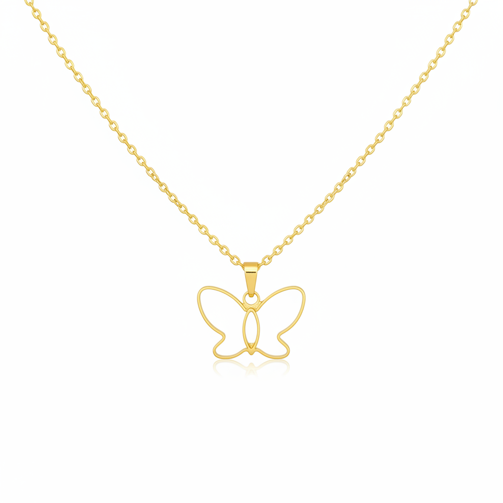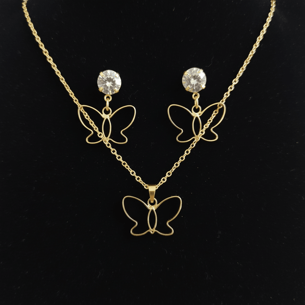 Kit Colar e Brinco Borboleta Vazada Zircônia Cristal Folheado Ouro 18k: elegância e durabilidade em um só conjunto.