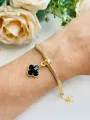 Pulseira Folheada a Ouro com Pingente Trevo Preto – Elegância Atemporal