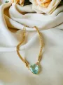 Pingente em formato de coração, com pedra em tom azul lapidada
