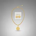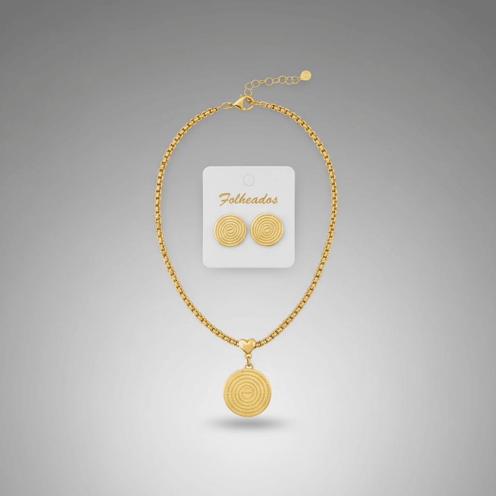 Kit Medalha Pai Nosso Brinco e Colar Folheado a Ouro 18k: Elegância e Durabilidade em um Só Conjunto.