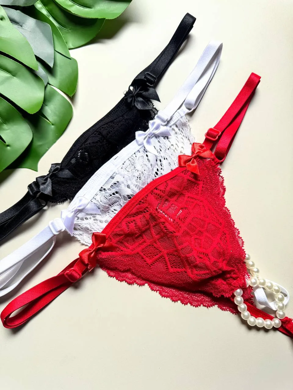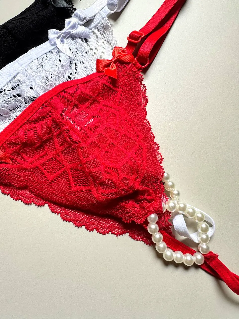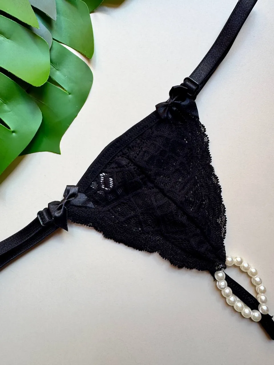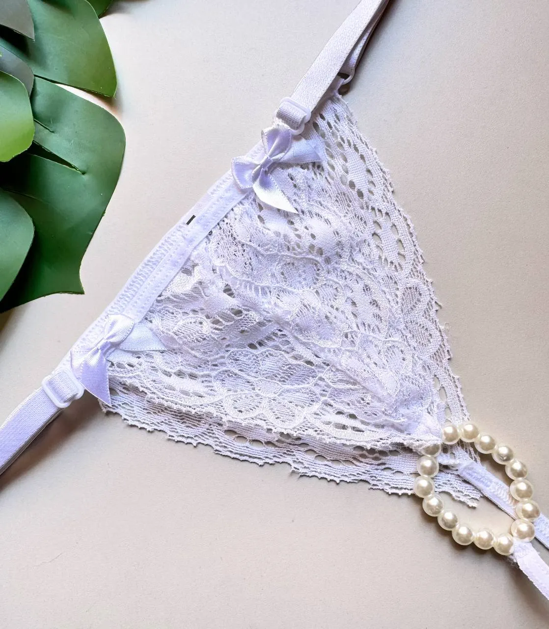 Tanga regulável confeccionada em renda, com Pérolas Estimulantes na parte íntima.