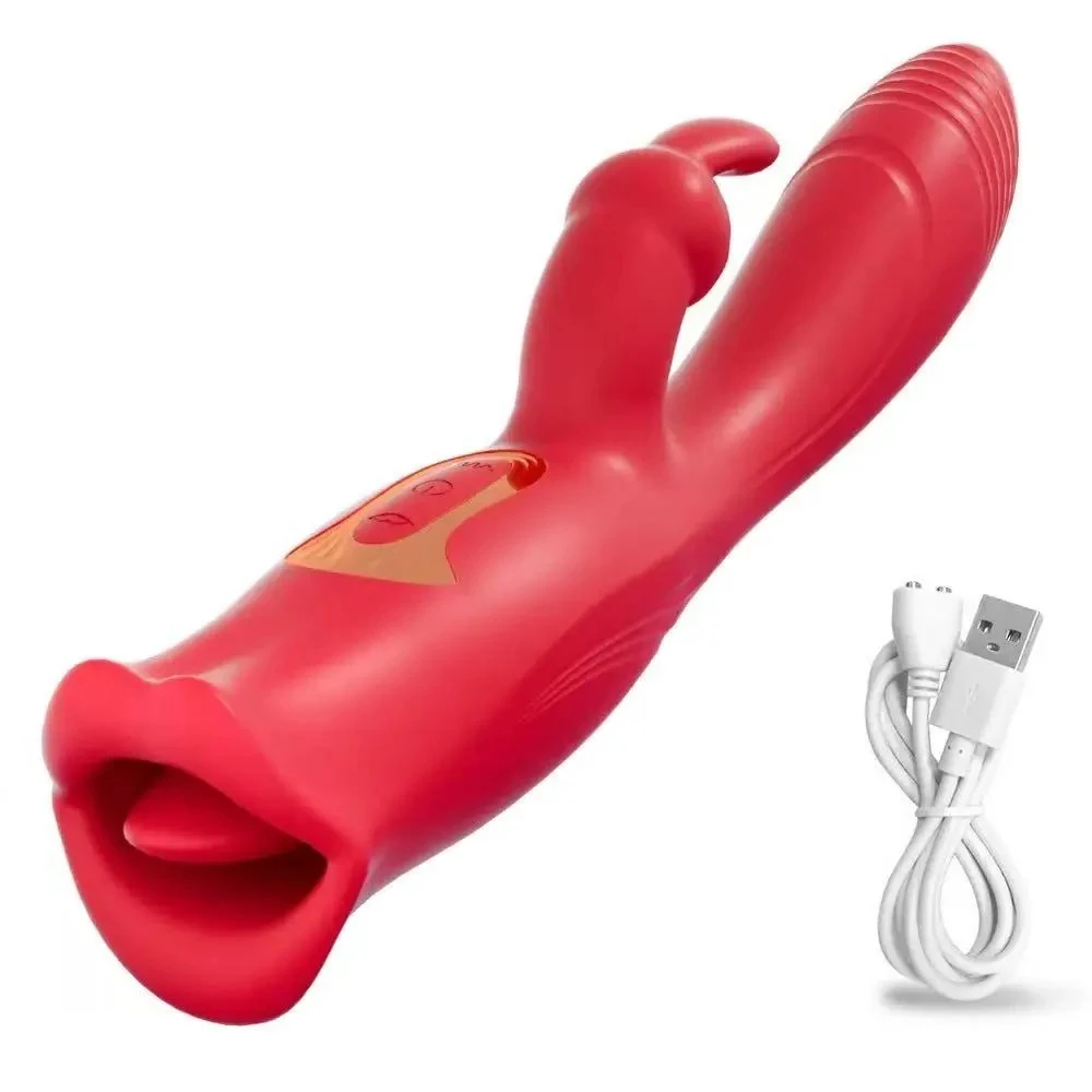 Vibrador 2x1 Penetrador c/ Estimulador e Boca C/ Movimento