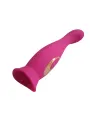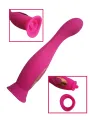 Vibrador de silicone rosa com duas formas de uso. Possui o penetrador curvado para estimular o ponto G com precisão. Do outro lado possui um "Língua" que vibra e faz movimento, perfeita pra estimular o clitóris.