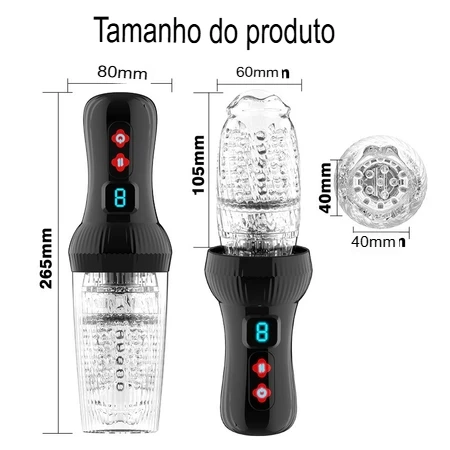 O interior do Masturbador é produzido em silicone macio e TPE, materiais que oferecem uma sensação extremamente confortável e próxima do real. A combinação entre vai e vem automático, vibração e rotação cria camadas de estímulo que elevam o prazer de forma progressiva, intensa e controlada.