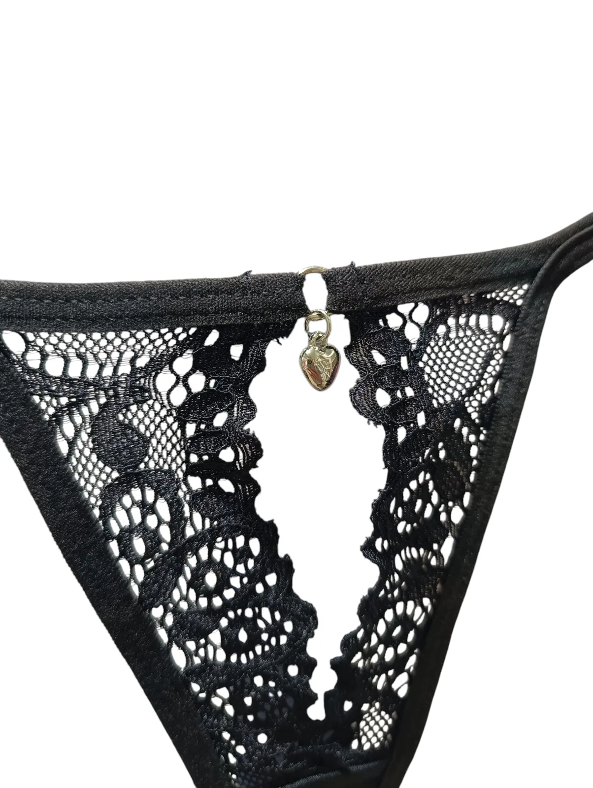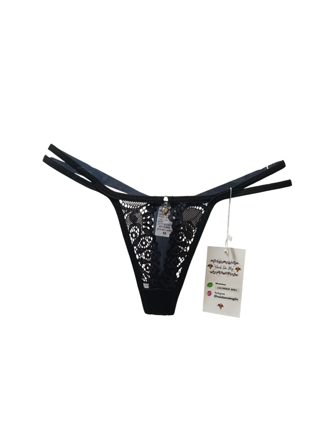 Procurando uma calcinha com design único e que mataria qualquer um do coração? Pois te apresento a escolha ideal! Essa Calcinha Fio Dental possui uma fenda na frente em renda que a deixa mais incrível possível. Sem falar do pingente na frente que dá um charme todo especial. Suas alças duplas em fio podem ser deixadas juntas ou separadas realçando ainda mais o bumbum. Conforto, qualidade e sensualidade em uma peça única. Veste tamanho M. Cor: escolha dentre as disponíveis. Ficha Técnica 90% Poliéster 10% Elastano 100% Algodão no forro.