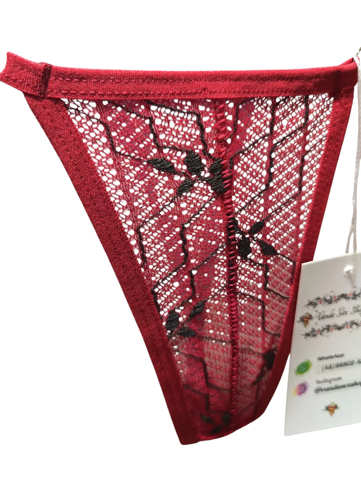 Calcinha modelo fio dental, confeccionada em renda vermelha com flores bordadas em preto. Um modelo sexy que toda mulher precisa ter em seu guarda-roupa, além de confortavél, ela é ideal para usar com roupas mais delicadas, pois não irá marcar o tecido. Seu modelo fio em renda, transforma a sua peça sensual, proporcionando bem estar e a segurança de estar preparada para o que vier. Veste tamanho M. Ficha Técnica Composição: 90% Poliéster 10% Elastano 100% Algodão no forro.