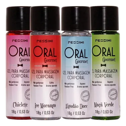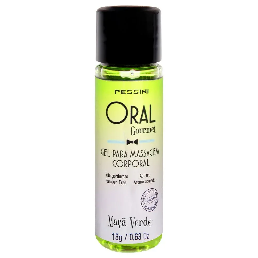 Mini Oral Gourmet Gel Comestível 18g Pessini: Uma Explosão de Prazer e Sabor. O Mini Oral Gourmet Gel Comestível da Pessini é uma irresistível combinação de sabor e prazer, com um toque térmico que eleva a experiência a novos patamares! Modo de Uso: Aplique em pequenas quantidades na pele íntima e desfrute do agradável aquecimento no local da aplicação. Sua propriedade estimuladora proporciona mais prazer durante a transa. Contém: 18g Sabores: escolha dentre os disponíveis.