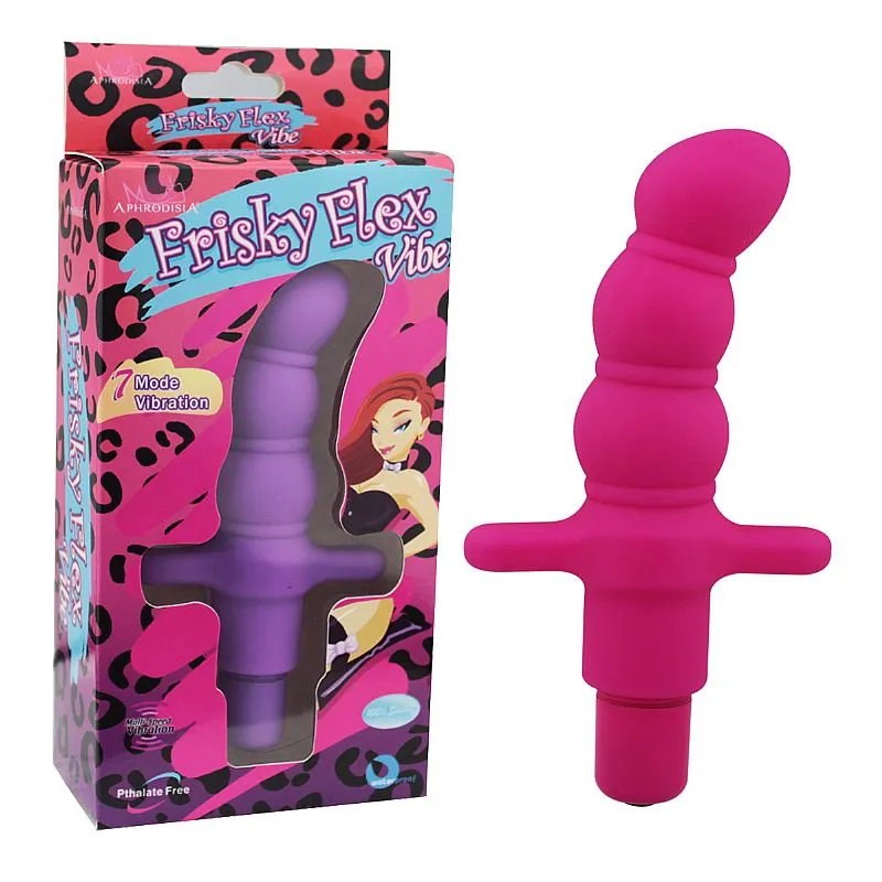 O Frisky Flex Vibe, é um vibrador feito em silicone de toque macio e fácil limpeza. Possui 7 níveis de vibração. Resistente a água. Material: Silicone. Baterias: Utiliza 1 pilha AAA não inclusa. Dimensões: 12,7 x 2,8 cm. Recomendações: É recomendado o uso de lubrificante. Cuidados: Lavar com água e sabão neutro antes e após o uso e não compartilhar. Não molhar o compartimento das pilhas. Conservar fora da luz solar e não expor a temperatura superior a 50ºC.