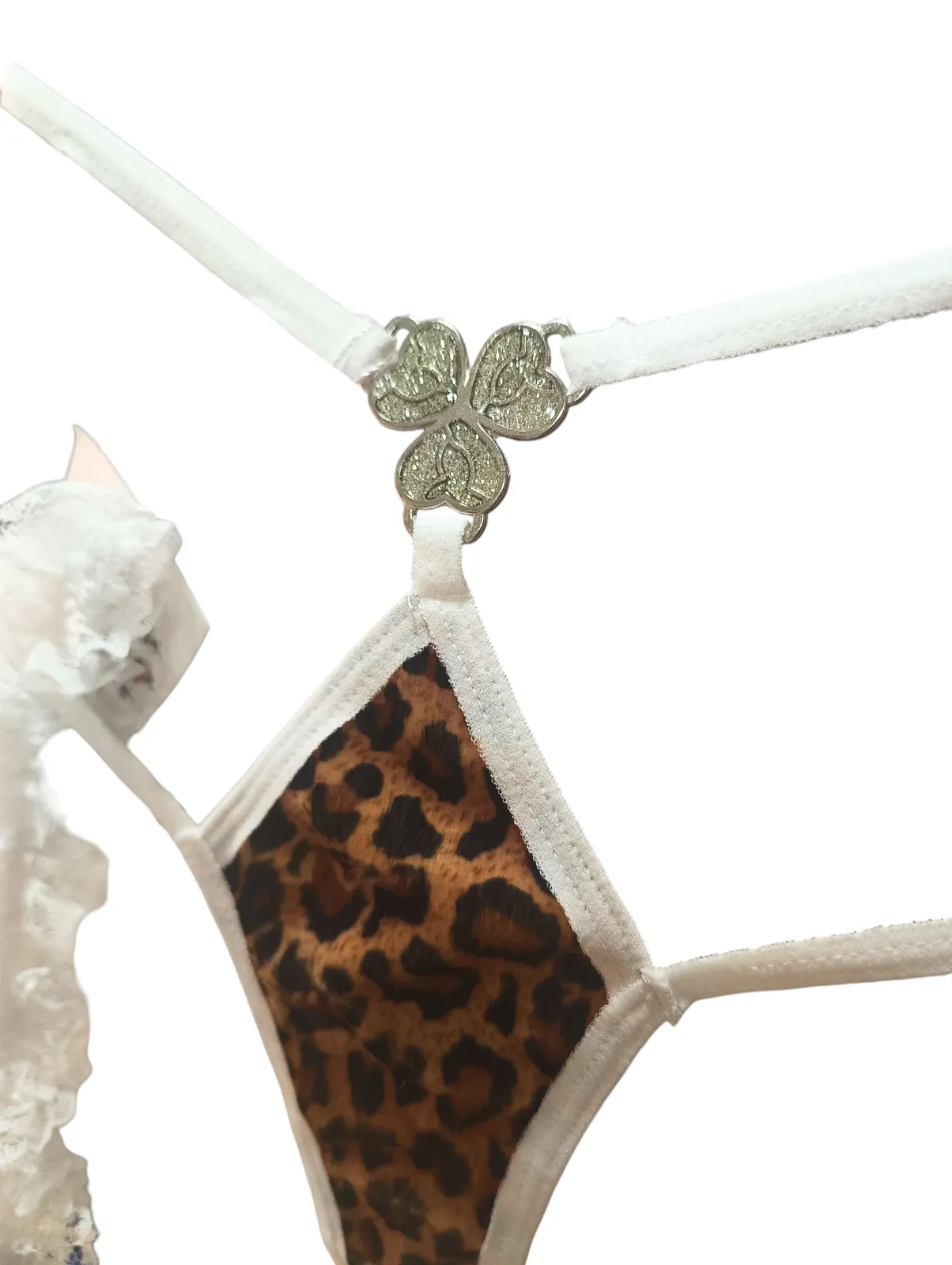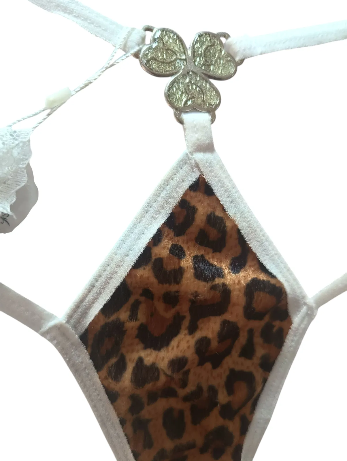 Calcinha Oncinha Peluciada C/ Persex Tam. M é a combinação perfeita de sensualidade e conforto. Com uma estampa de oncinha irresistível e um detalhamento em branco, essa calcinha fio dental é adornada com um elegante pingente em formato de trevo de três folhas, garantindo um toque especial. Ideal para ocasiões especiais ou para se sentir confiante no dia a dia. Adicione um toque de glamour ao seu guarda-roupa e sinta-se maravilhosa! Material: Veludo e renda Tamanho: M Estilo: Fio dental Detalhes: Estampa de oncinha e pingente Acompanha Persex.