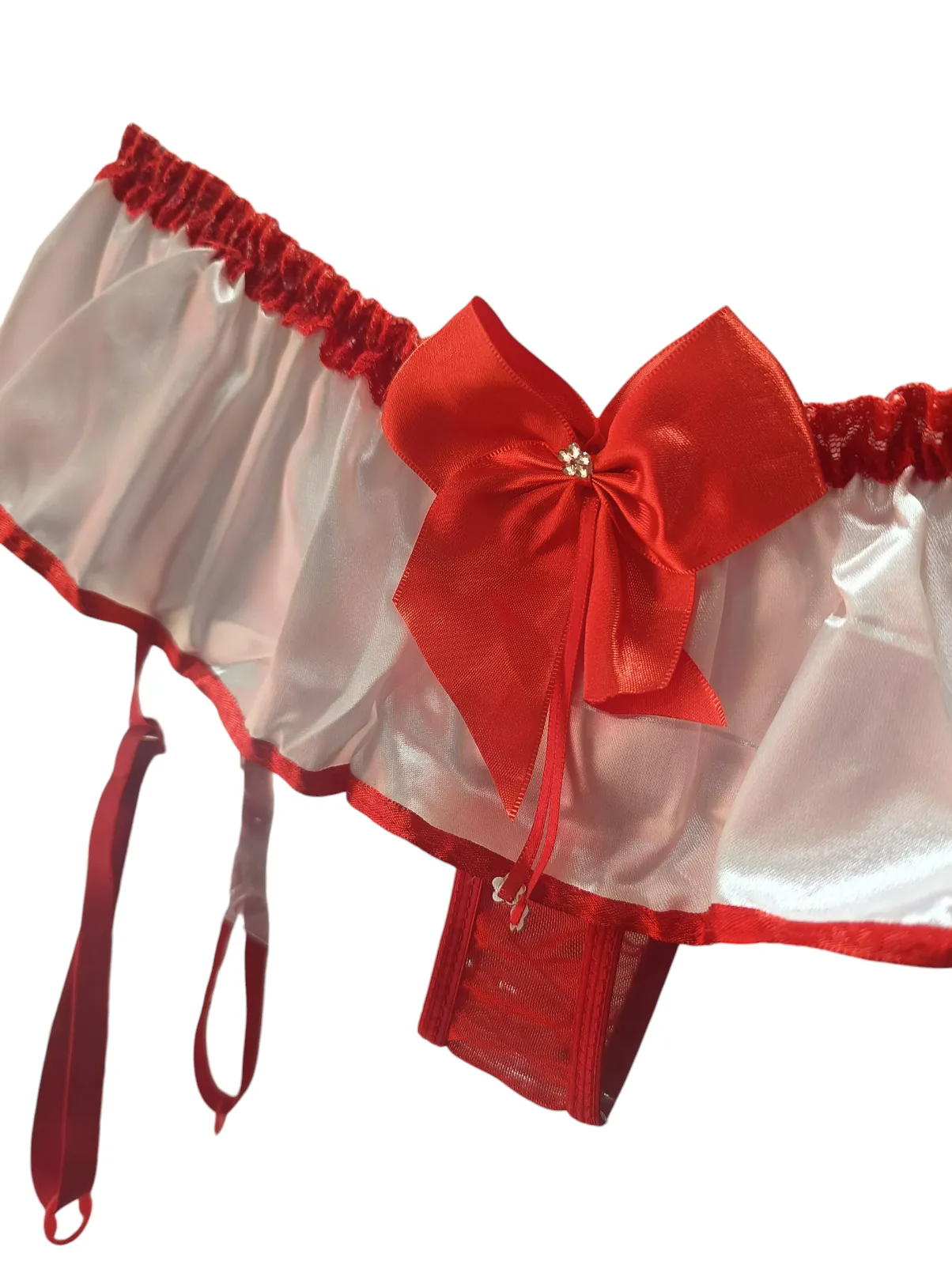 Calcinha/Saia Liga Branco c/ Vermelho Pimenta Sexy