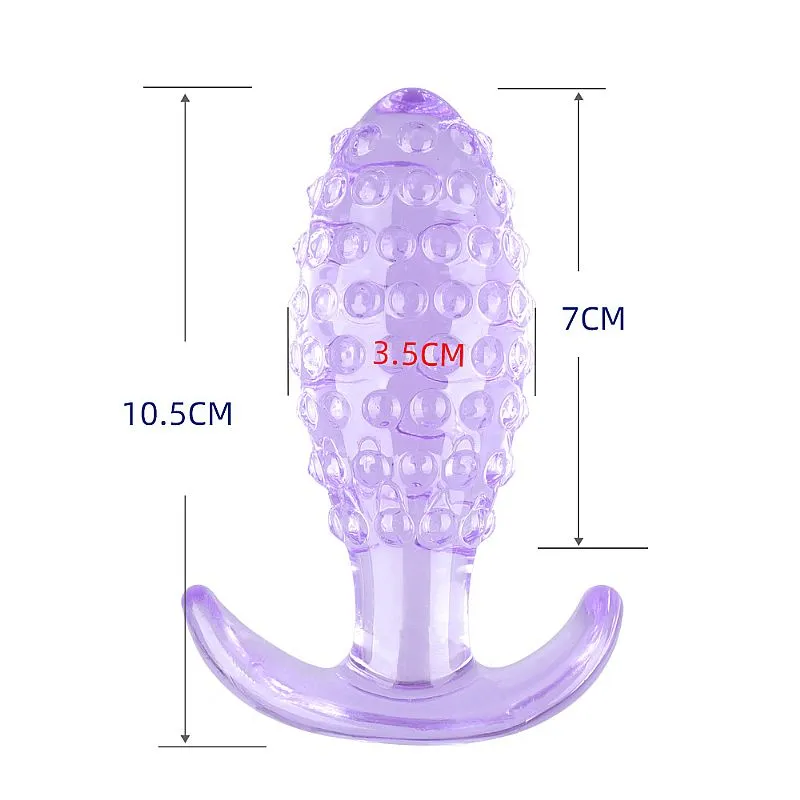 Plug Anal em Jelly / Com Textura de Bolinha - 9x3,5cm Plug anal feito de um material macio e consistente com base que facilita o manuseio. O formato cônico torna a penetração suave e ao mesmo tempo desafiante, pois conforme a penetração ocorre a largura do plug aumenta. Próximo à base, o cone fica mais curto. Modo de uso: Lubrificar antes da penetração. ...