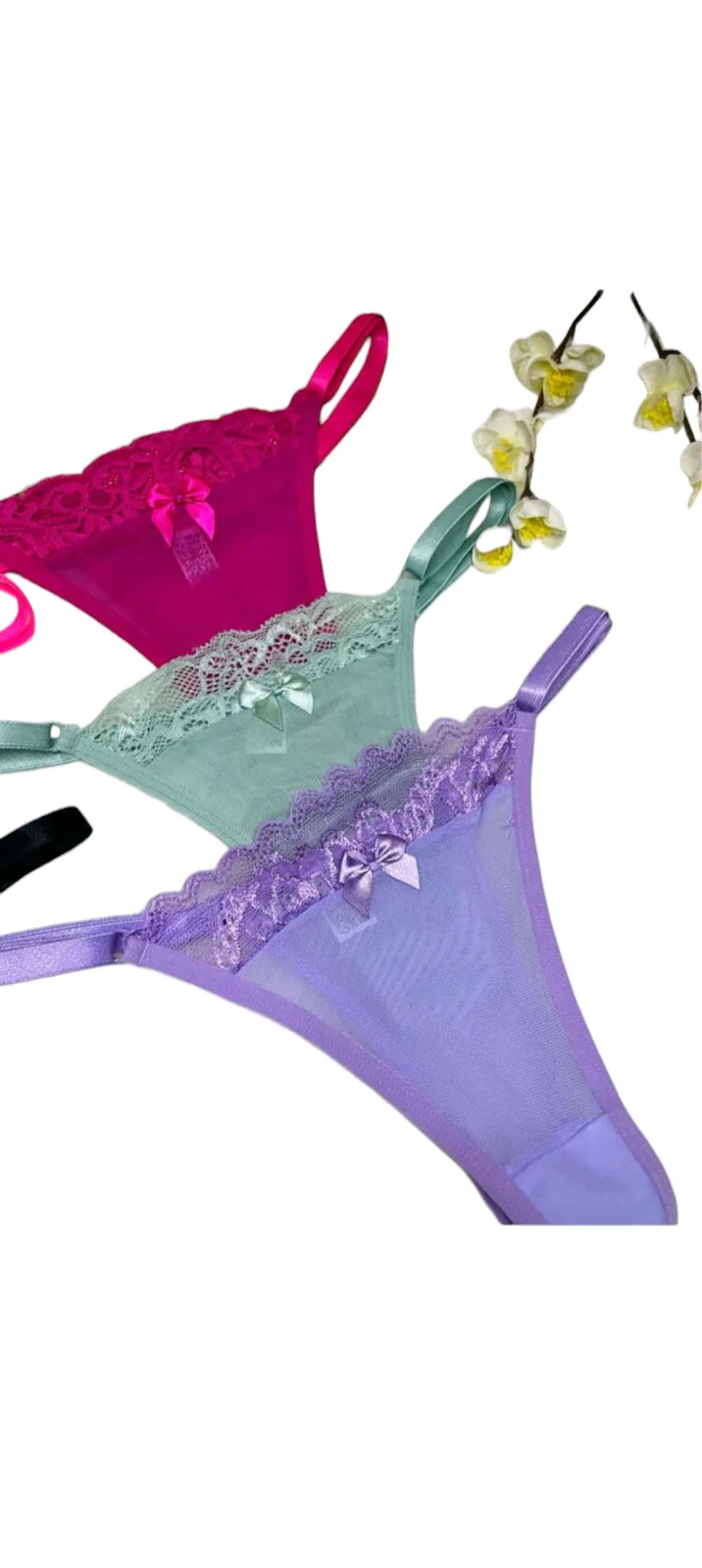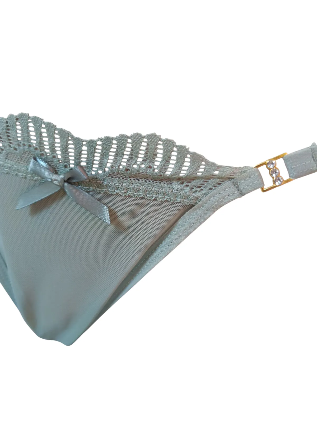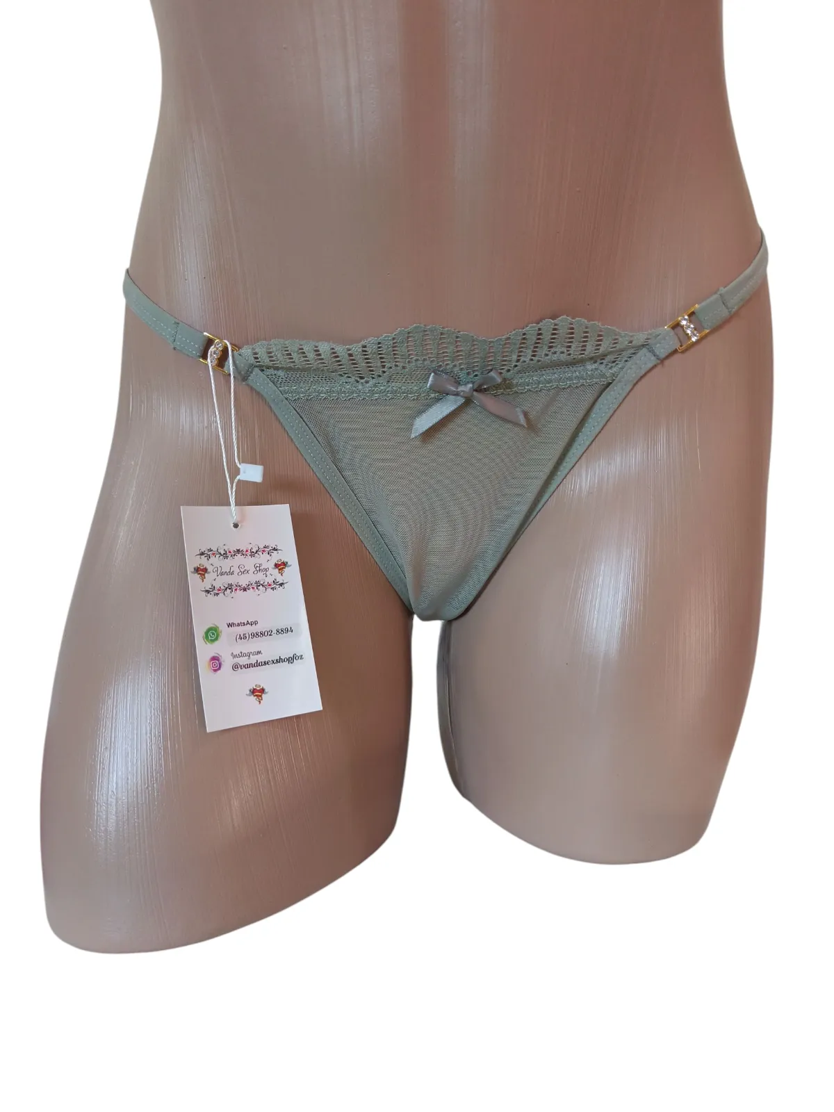 Calcinha Fio Dental com Laço e Detalhes em Renda – Verde Claro Delicadeza, sensualidade e sofisticação em uma única peça. Essa calcinha fio dental na cor verde claro foi criada para valorizar cada curva do seu corpo com um toque ousado e elegante. Na parte frontal, a peça é confeccionada em tecido leve e transparente, com acabamento em renda trabalhada e u...