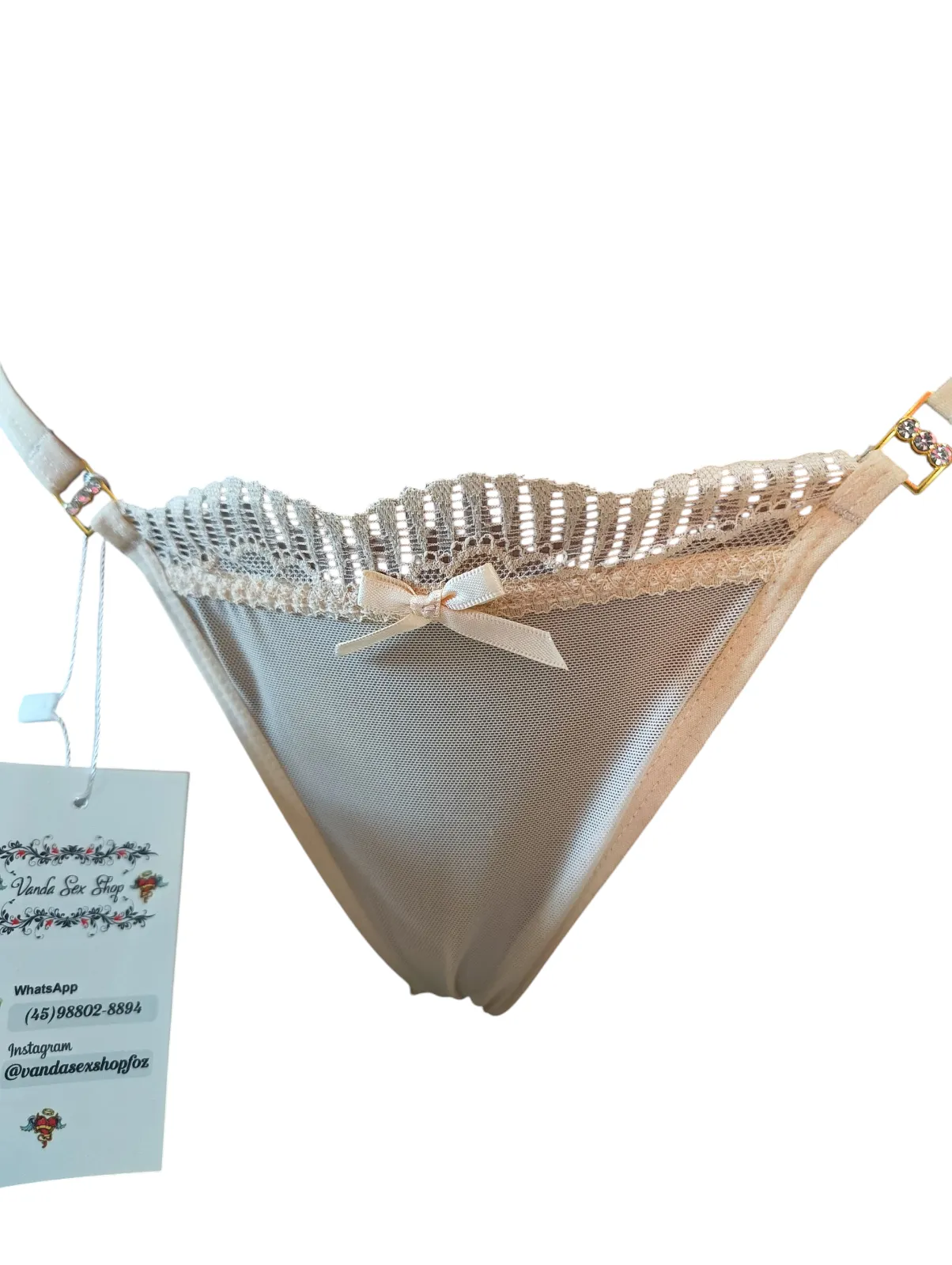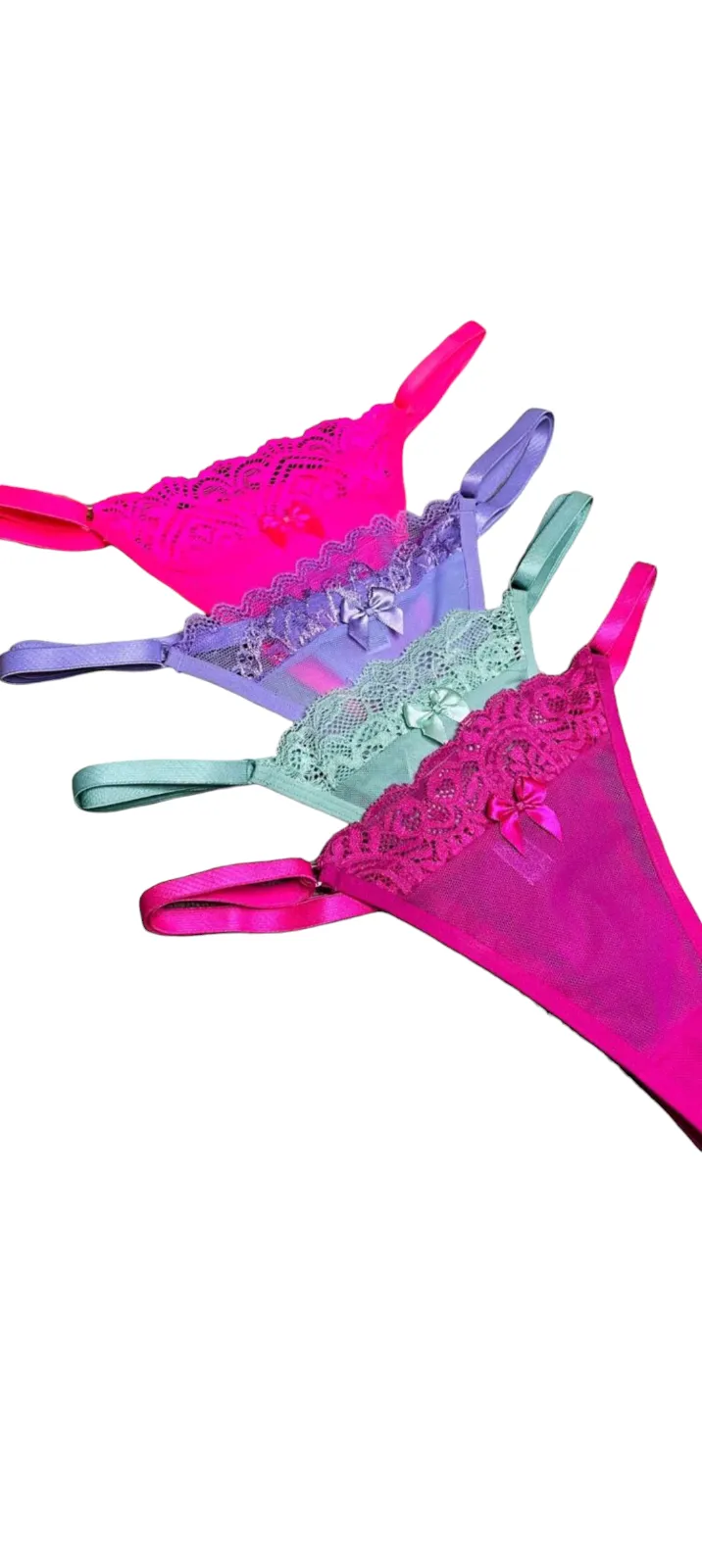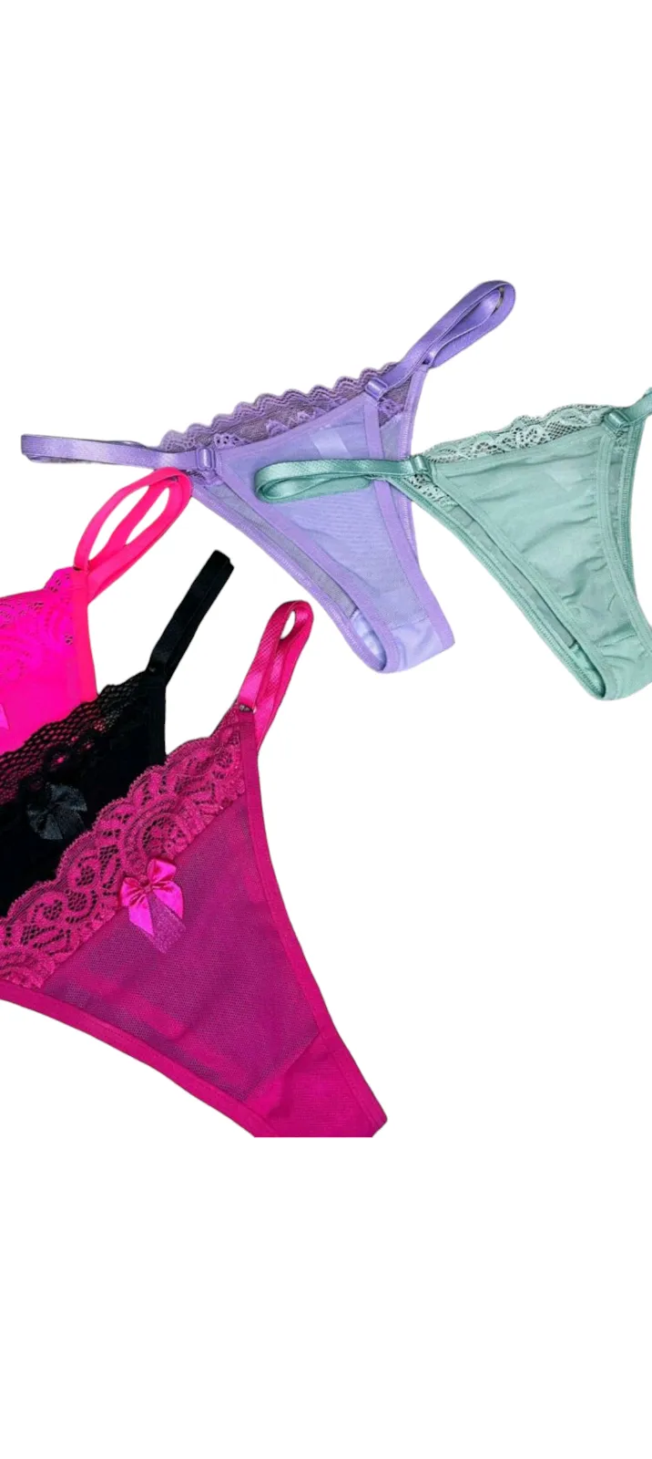 Calcinha Fio Dental com Laço e Detalhes em Renda – Verde Claro Delicadeza, sensualidade e sofisticação em uma única peça. Essa calcinha fio dental na cor verde claro foi criada para valorizar cada curva do seu corpo com um toque ousado e elegante. Na parte frontal, a peça é confeccionada em tecido leve e transparente, com acabamento em renda trabalhada e u...
