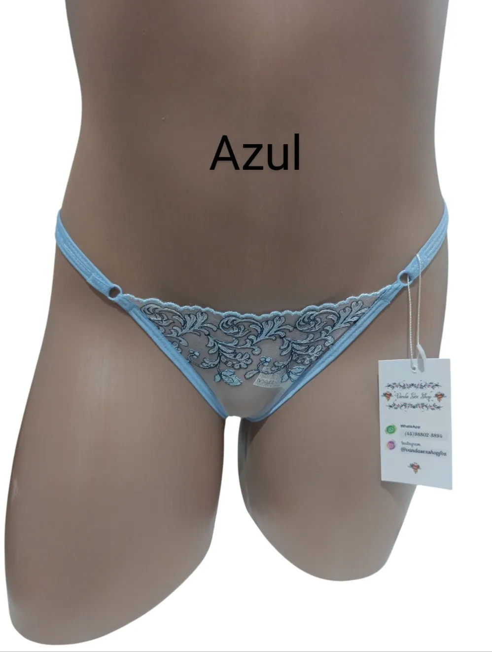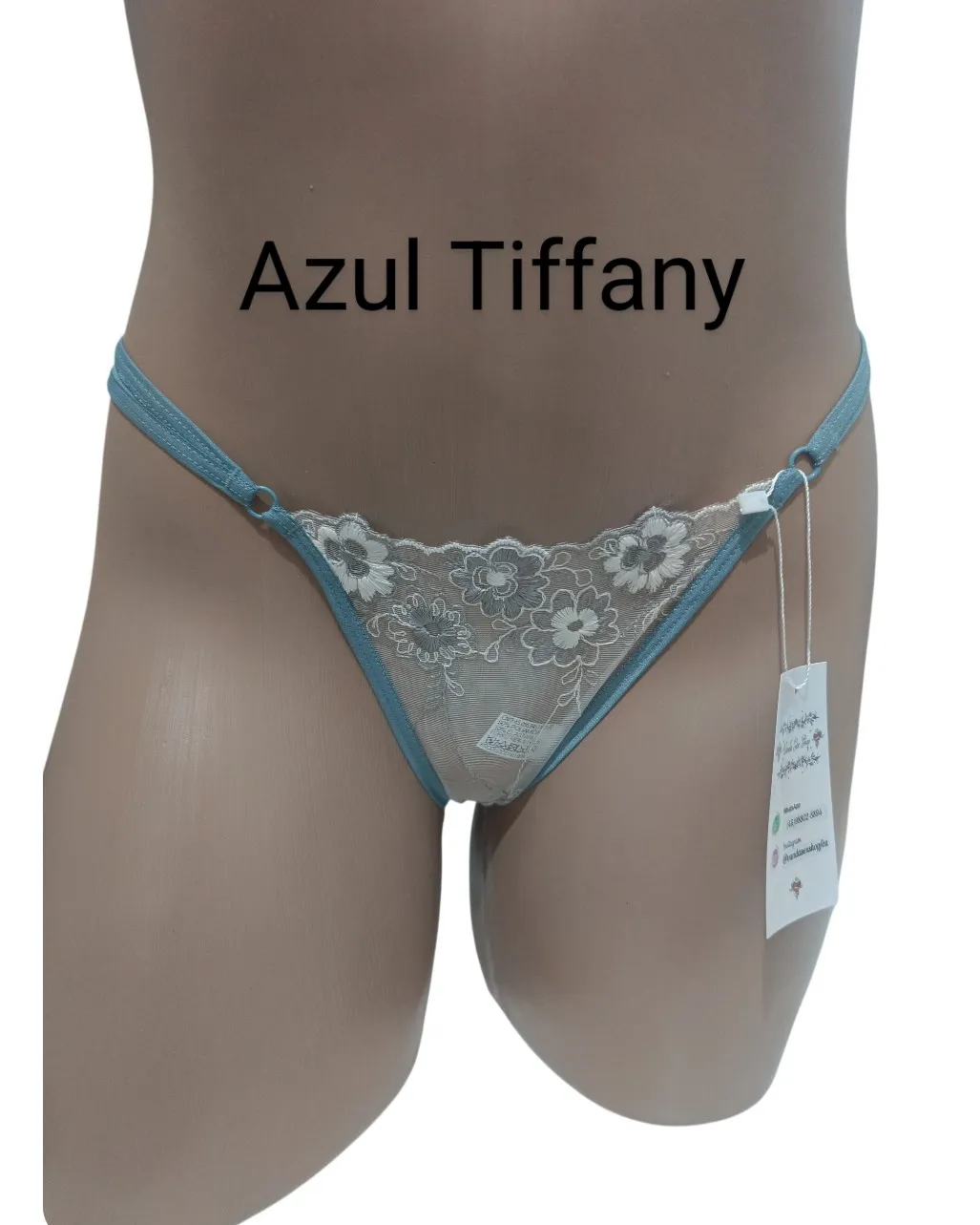 Calcinha Tule Bordado E Microfibra - M - Azul claro