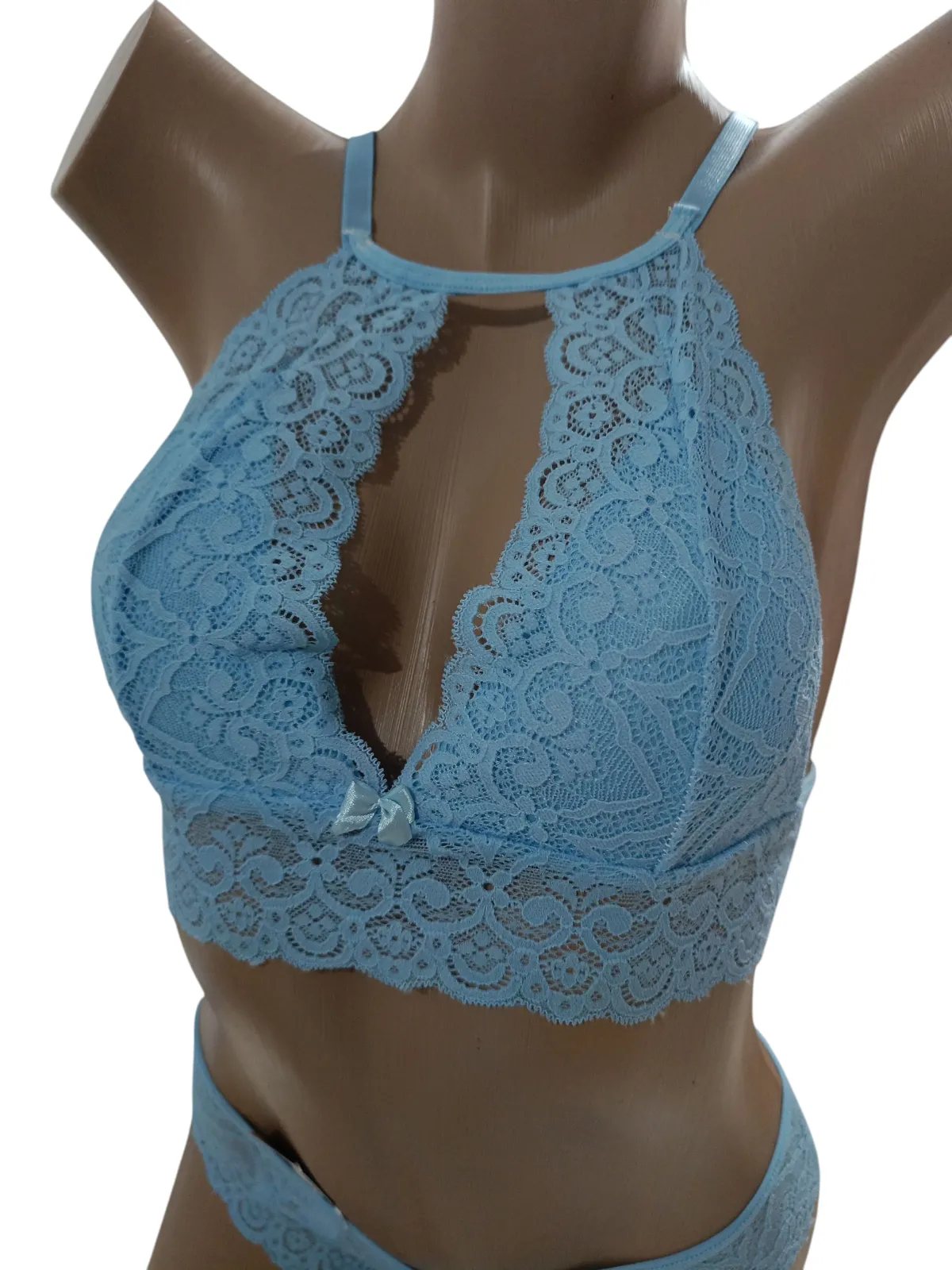 Conjunto Renda c/ Persex: Atraia olhares com elegância e sedução. Este conjunto sensual em renda azul bebê traz um sutiã delicado, calcinha charmosa e um Persex que exalta sua confiança e estilo. Ideal para momentos íntimos ou para surpreender alguém especial, ele combina conforto e sensualidade de forma irresistível. Use-o em noites românticas ou em ocasiões especiais, e sinta-se poderosa e sedutora. Não perca a oportunidade de elevar sua lingerie! Adquira o seu agora mesmo! Tamanho: P Cor: Azul bebê Material: Renda Inclui: Sutiã, calcinha e Persex