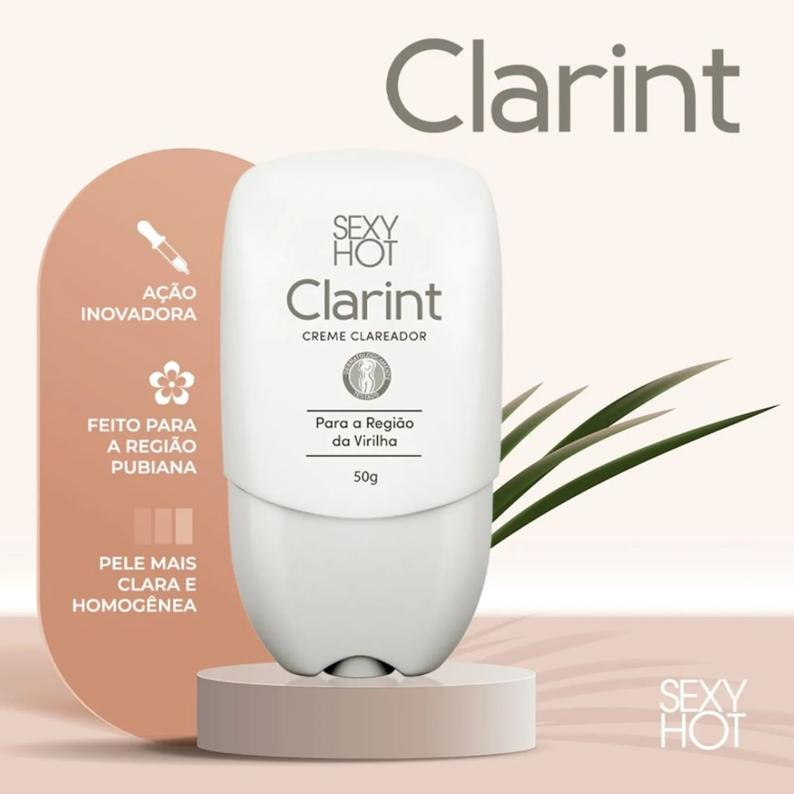 Clarint Sexy Hot é um creme clareador para a região da virilha e região pubiana que foi desenvolvido para trazer uma nova rotina de cuidados com a região Íntima. O Clarint é um produto desenvolvido com ativos naturais e tem como ativo principal o Biofoetida Extract que é um extrato de uma planta rica em ácido ferúlico, que reduz a melanogênese da pele, propo...