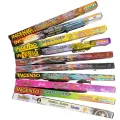Instruções de uso: Coloque a vareta num suporte adequado e acenda a ponta assoprando logo em seguida.