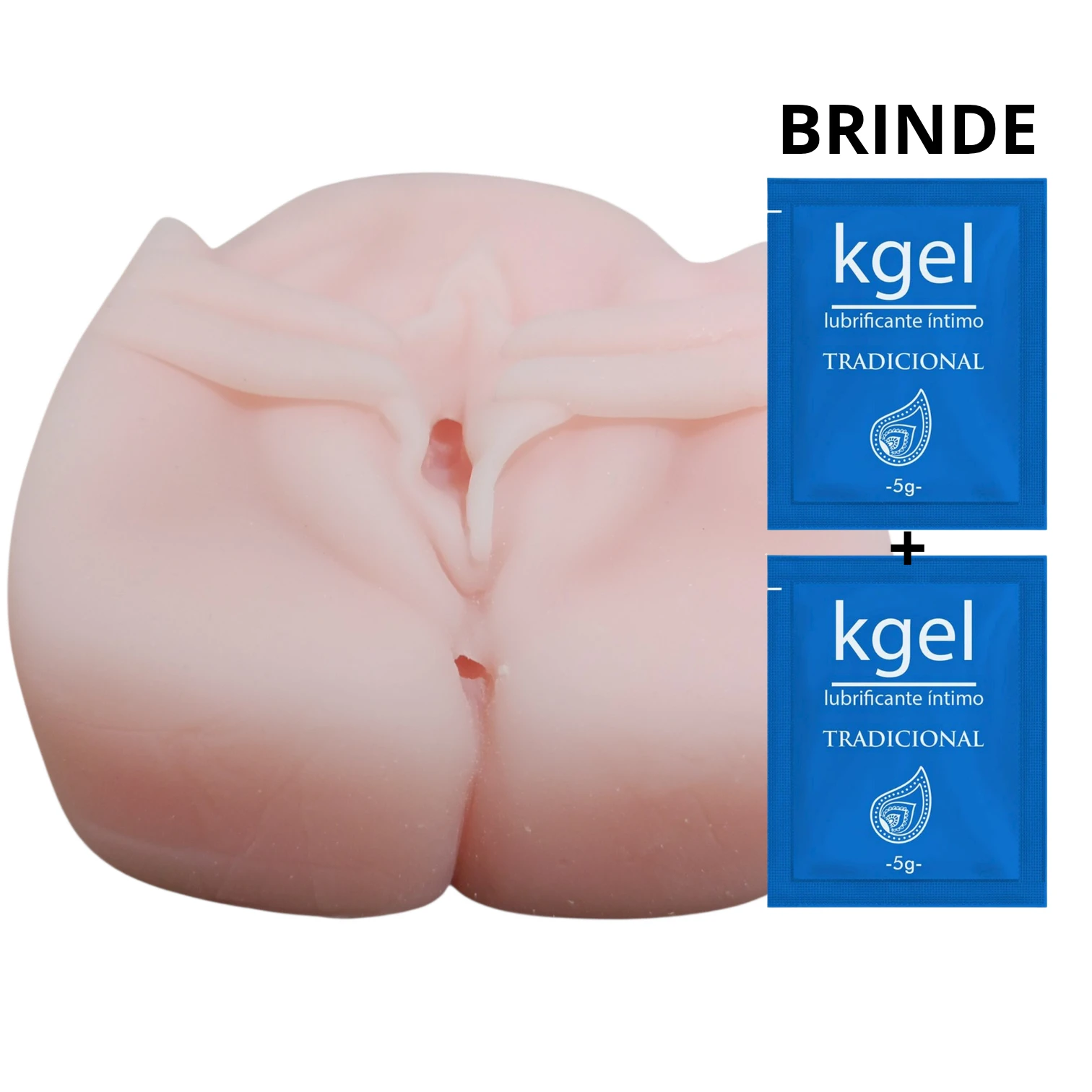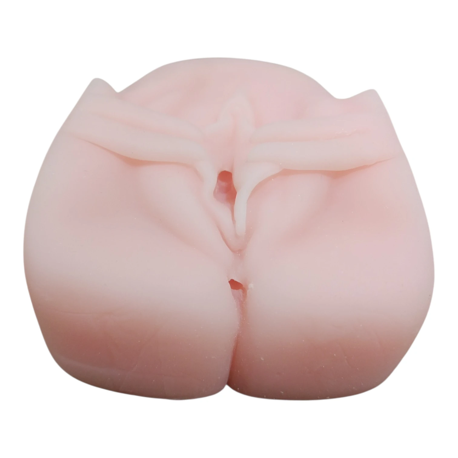 Masturbador formato vagina com dedos afastando os lábios, em cyber macio. Possui textura interna e duas entradas para Penetração.