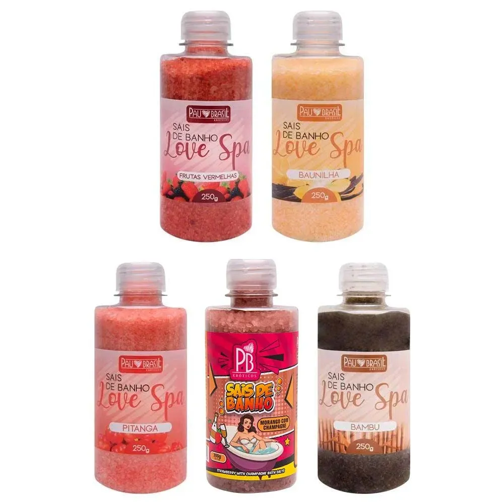 Sais de Banho Aromático - 250g Pau Brasil. Os Sais de Banho Aromáticos Pau Brasil são ideais para quem deseja cuidar do bem-estar de uma maneira relaxante e sensual. Hidratam a pele e possuem deliciosas fragrâncias envolventes e afrodisíacas. O produto pode ser utilizado tanto na banheira quanto no chuveiro, proporcionando uma experiência sensorial única.