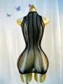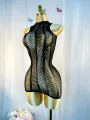 Bodysuit arrastão preto em malha elástica com mesh texturizado. Modelagem justa que realça a silhueta, com gola alta e recortes que criam painéis estilosos. Tecido macio e respirável para conforto durante toda a noite. Ideal para looks noturnos, lingerie ousada ou styling fashion. Combine com jaqueta, saia ou calça para um visual impactante.
