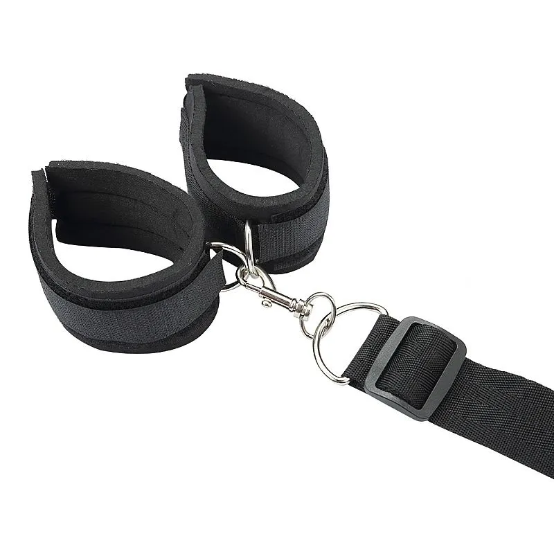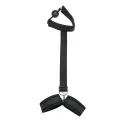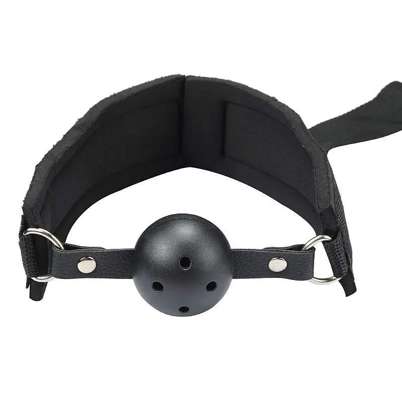 Mordaça com bola respiro e algema traseira. Possui regulagem da altura das mãos para um maior conforto.