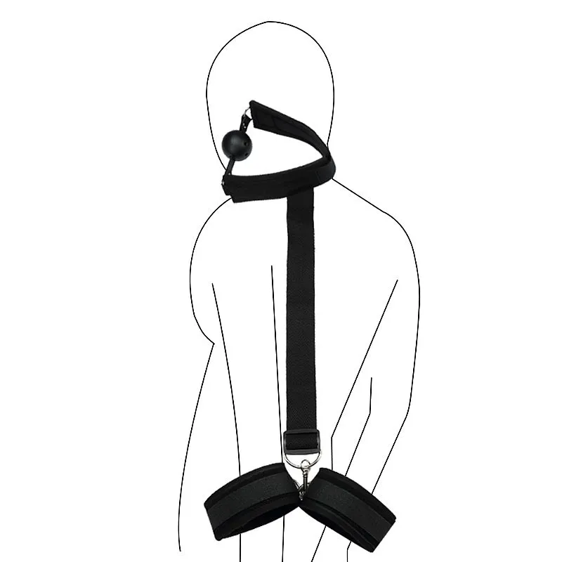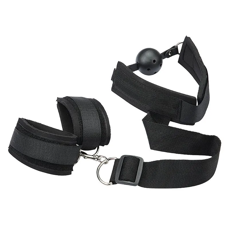 Sado Erótico - Algema Traseira com Mordaça Bola Respiro