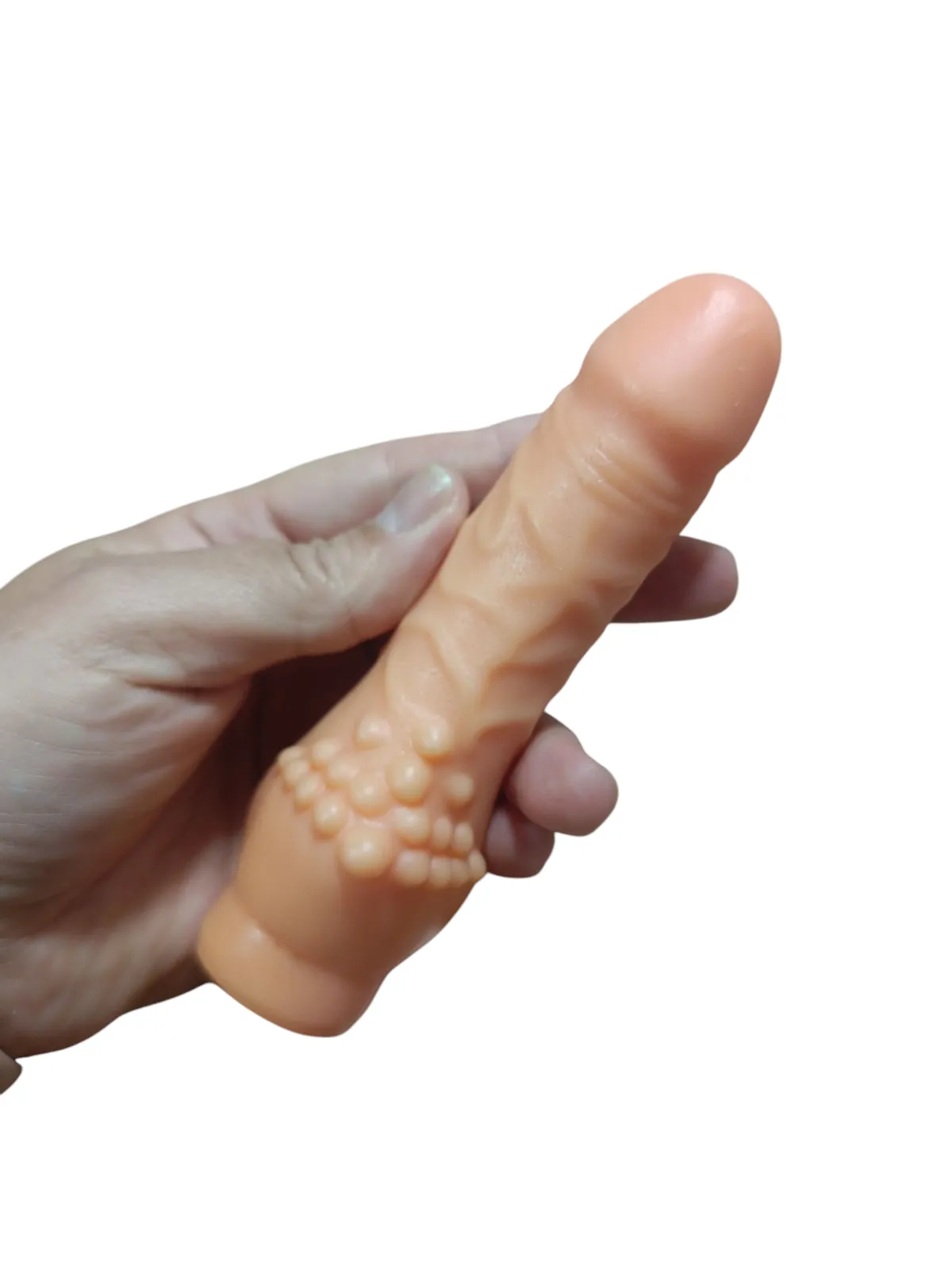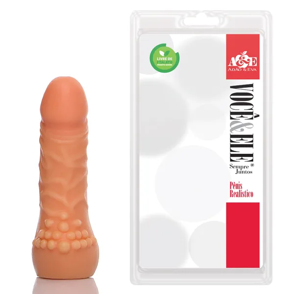 Prótese em formato de pênis com 13 cm de comprimento e 3 cm de diâmetro cônico com textura em veias e base com relevo estimulador para penetração vaginal ou anal, em PVC atóxico de fácil higienização.