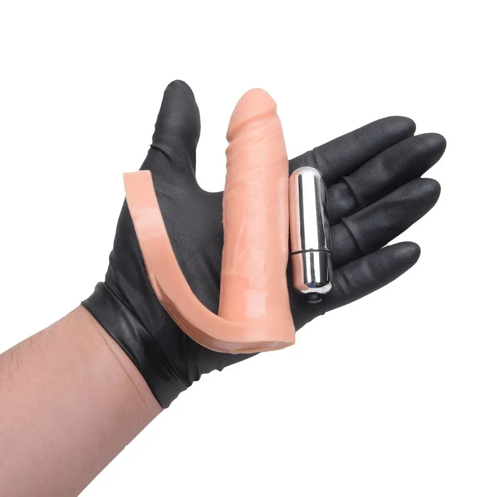 Coloque o anel na base do pênis e aproveite a vibração e dupla penetração.