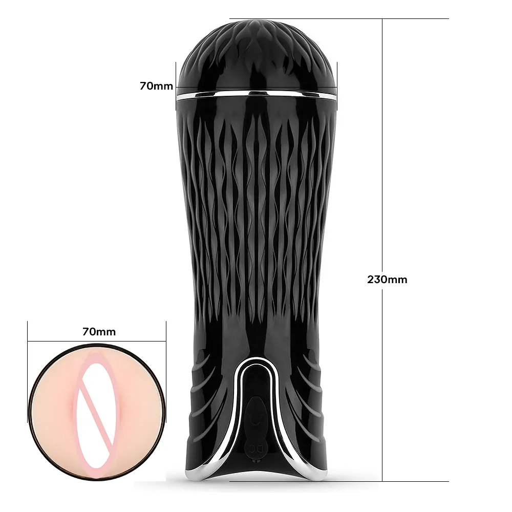 A peça interna é toda em cyber macio e com textura que simula o canal vaginal.