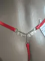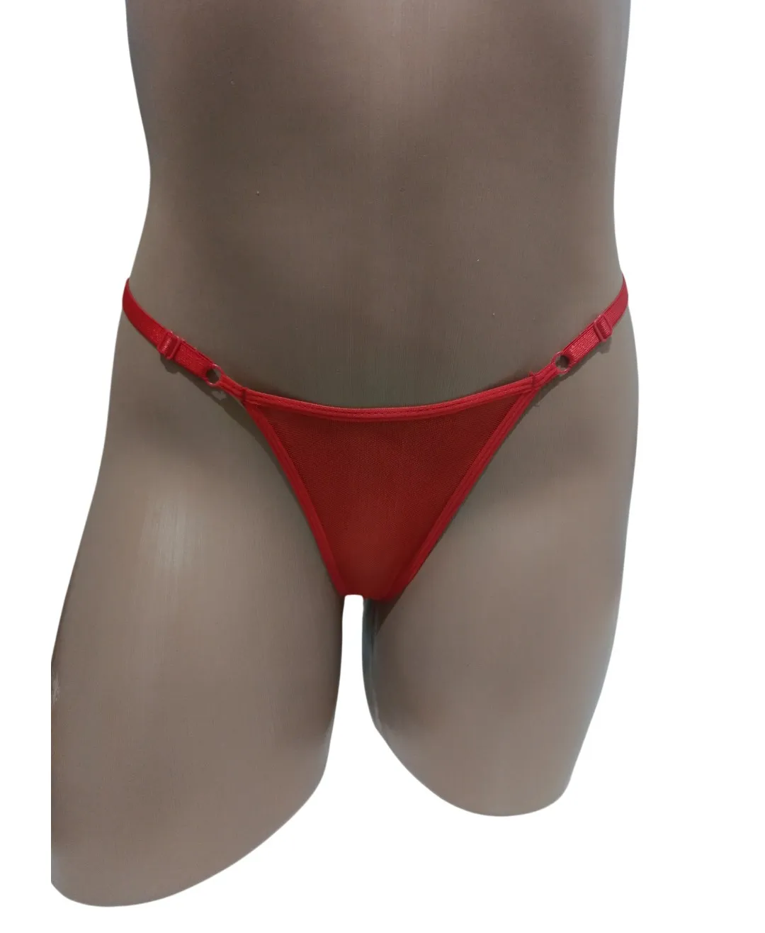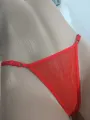 Calcinha vermelha fio dental em tule.