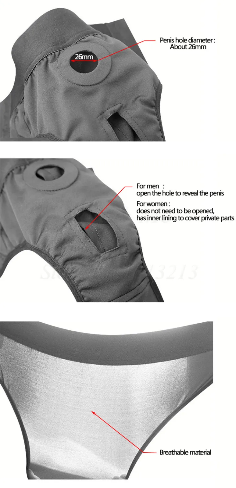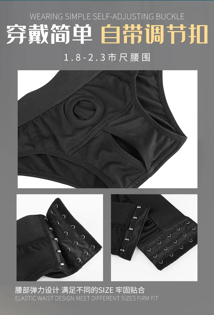 Cinto com orifício para prótese e abertura inferior.