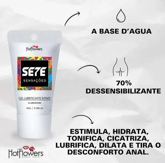 O Sete Sensações Anestésico da Hot Flowers é um gel multifuncional desenvolvido para tornar o sexo anal mais prazeroso, confortável e seguro. Sua fórmula exclusiva reúne sete benefícios em um único produto: anestésico, lubrificante, dilatador, cicatrizante, tonificante, hidratante e estimulante.