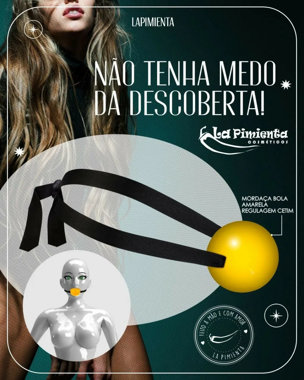 Contém: 01 mordaça bola com amarra em cetim