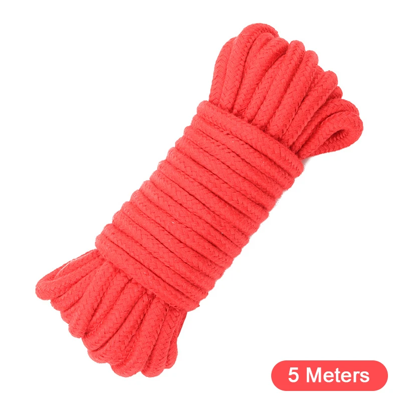 Corda 5m Chibari: conforto e resistência para suas práticas. Confeccionada em algodão, esta corda de 5 metros e 0,4 mm de espessura oferece segurança e conforto ideais para amarrações e dominação no sadomasoquismo.