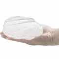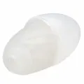Dentro da embalagem em forma de casca, você encontra uma peça de silicone que imita um ovo, porém oca e com um orifício na base.