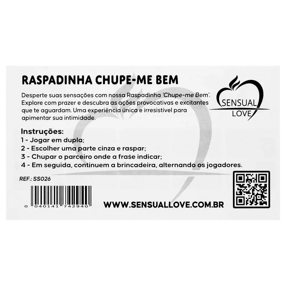 Raspadinha Chupe-me Bem. Adicione um toque de diversão e excitação aos seus momentos íntimos com a Raspadinha Chupe-me Bem da Sensual Love.