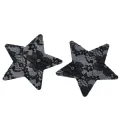 Formato estrela em renda preta. Pode ser usado por baixo de blusas com transparência ou para complementar lingerie sensual.
