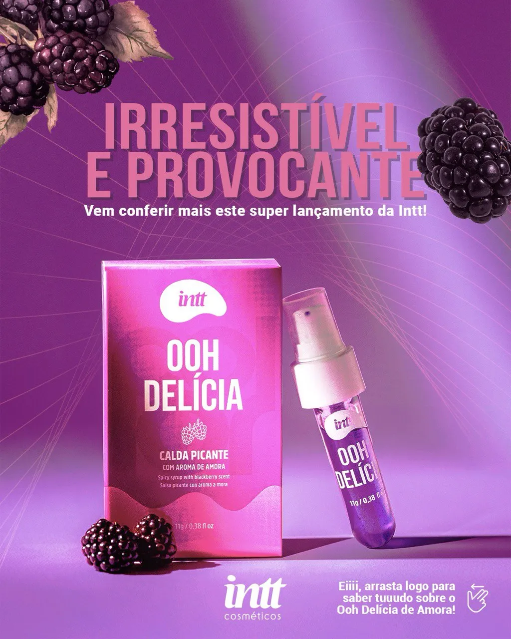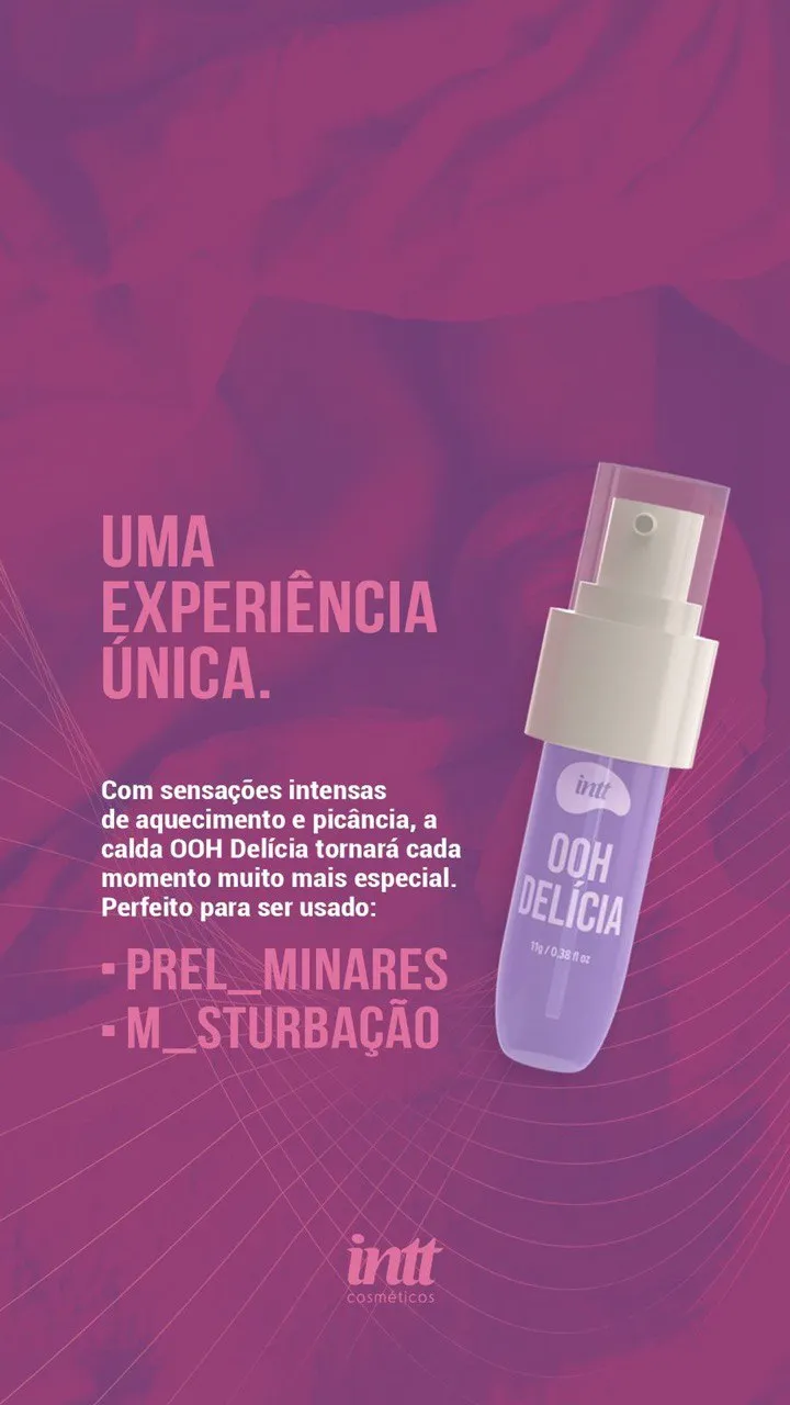 Ooh Delícia é uma calda beijável picante de Amora é o novo lançamento da INTT. Desenvolvido para deixar os momentos a dois mais intensos e prazerosos, é a escolha perfeita para quem busca uma experiência única e deliciosa para explorar novas sensações nas brincadeiras a dois. Desfrute de sensações térmicas inovadoras, levando seu momento de diversão a um novo patamar! 🫦
