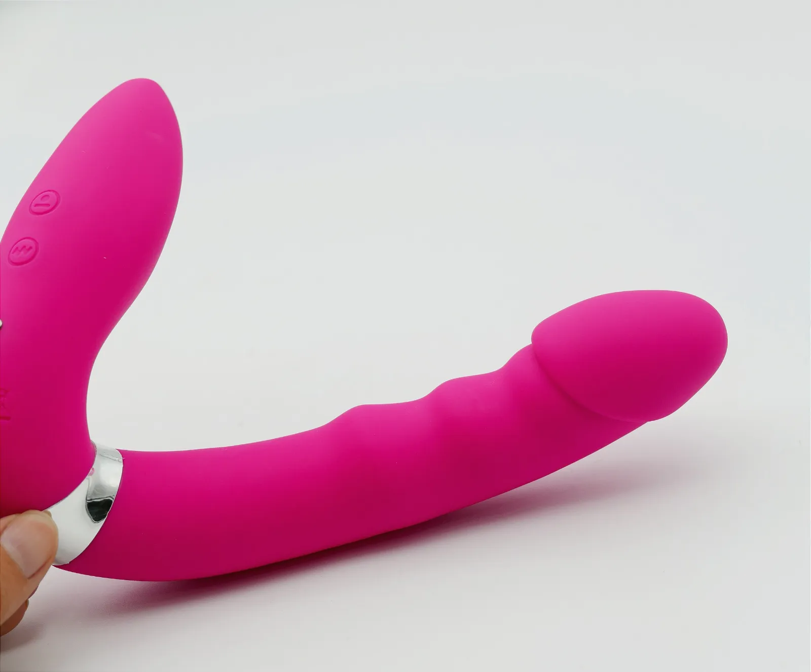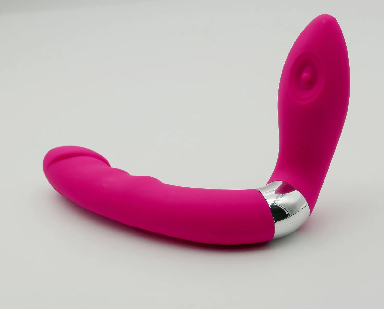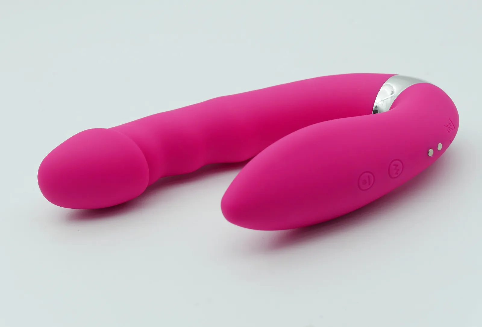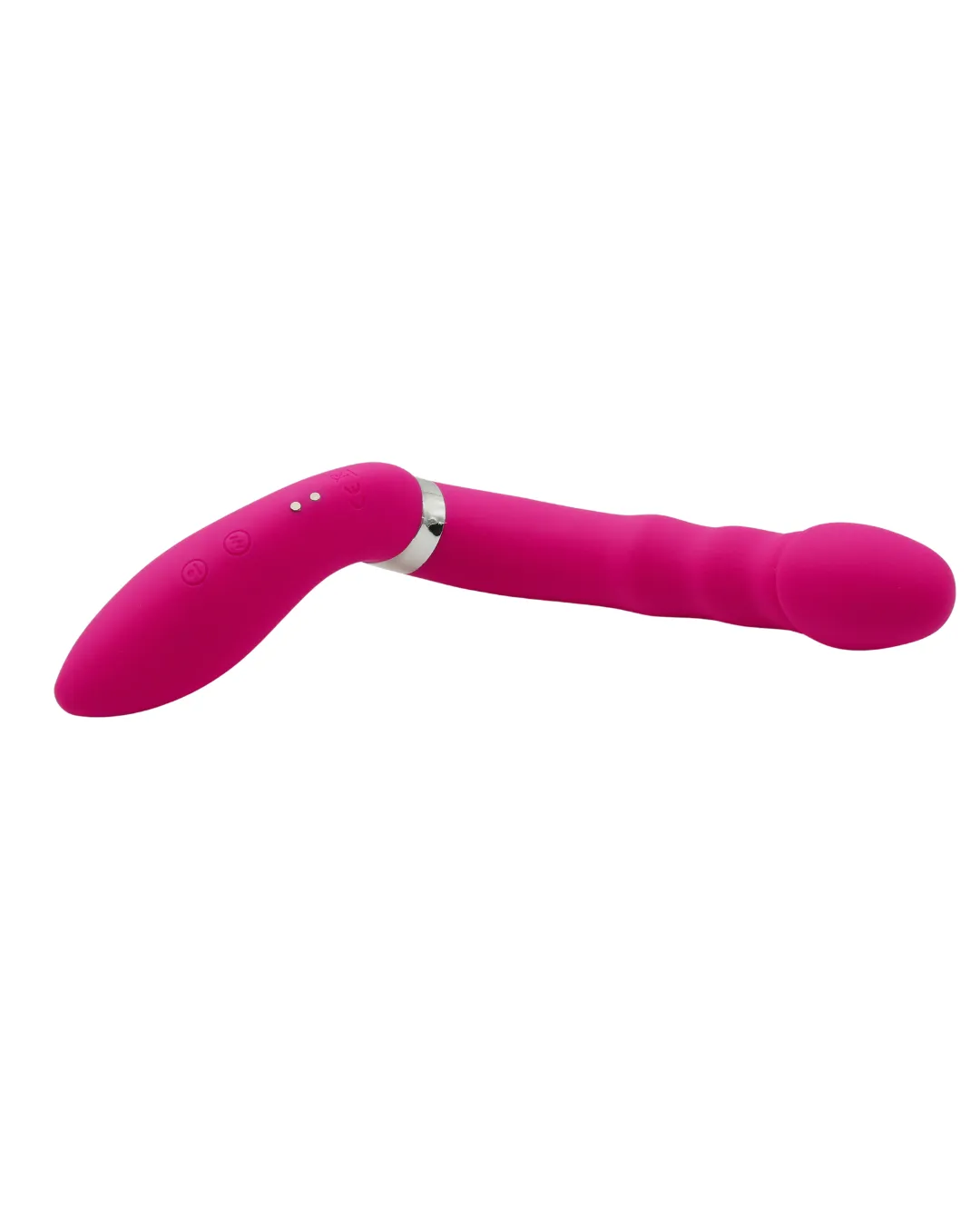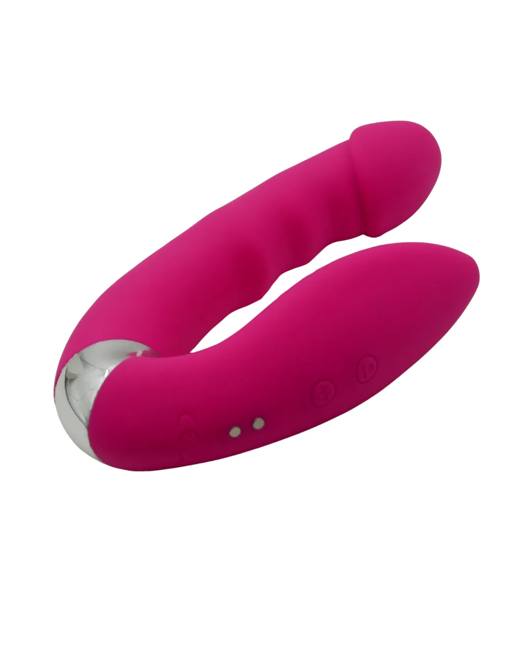 Possui botões de controle independentes. Você deixa o vibrador no formato em que deseja usar. Se for usar para penetração e estimulação clitoriana ao mesmo tempo, deixa as duas pontas para o mesmo lado e liga os dois motores. Caso deseje usar somente para estimulação clitoriana ou somente penetração, deixa uma ponta para cada lado e ligue o motor que desejar.