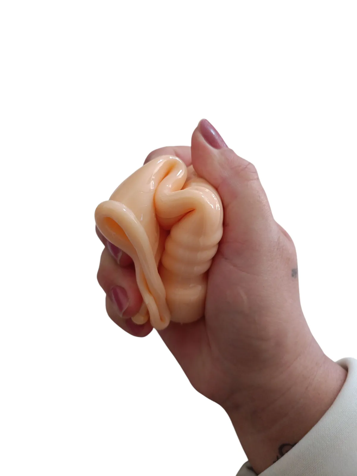 A peça é feita em silicone macio e flexível, possui elasticidade.