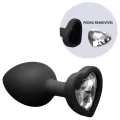 Plug P Silicone Preto c/ Pedra Coração Vermelho